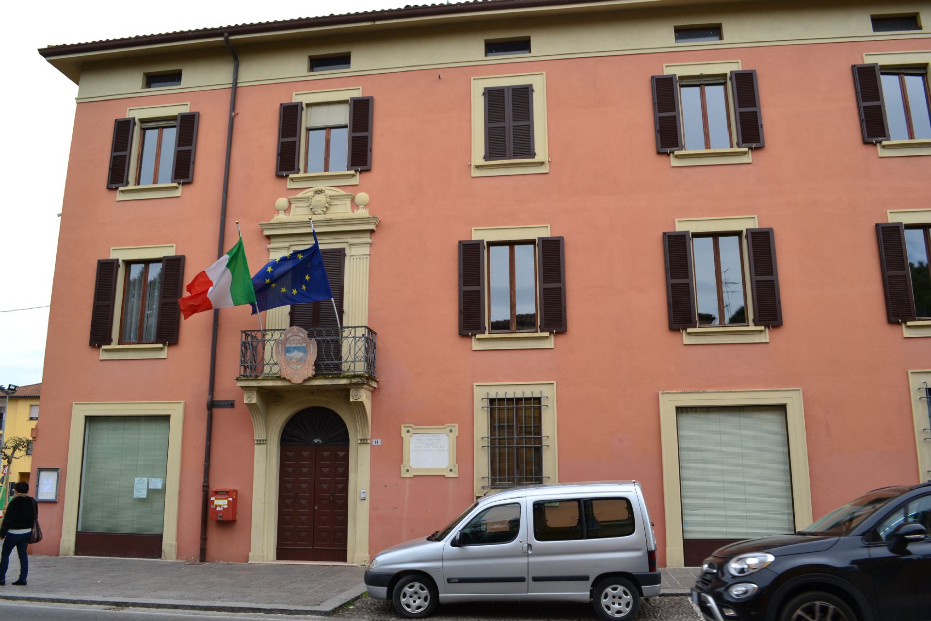 Con la progressiva definizione delle competenze dei comuni, si rese necessario progettare nel capoluogo "un fabbricato ad uso di residenza della magistratura". Fu l'Ing. Ciro Galassi a presentare il progetto per la sua realizzazione, in prima istanza nel 1835 poi nel 1836 (con un ampliamento del progetto che prevedeva il secondo piano). Il progetto fu approvato dal comune e autorizzato dal Cardinal Legato di Bologna già nel 1836, data in cui fu indetta la gara d'appalto. Nel 1837 Luigi Bandiera, Priore di Baricella, si aggiudica l'appalto per 1325 scudi e iniziano i lavori il giorno 20 febbraio 1837 sul terreno appena acquisito dalla Opera Pia dei Poveri Vergognosi. Il fabbricato ospitava originariamente: un locale per la scuola, uno per i carabinieri e uno per la prigione. Al primo piano la Sala Consiglio con due uffici e al secondo alcune stanze adibite ad abitazione.