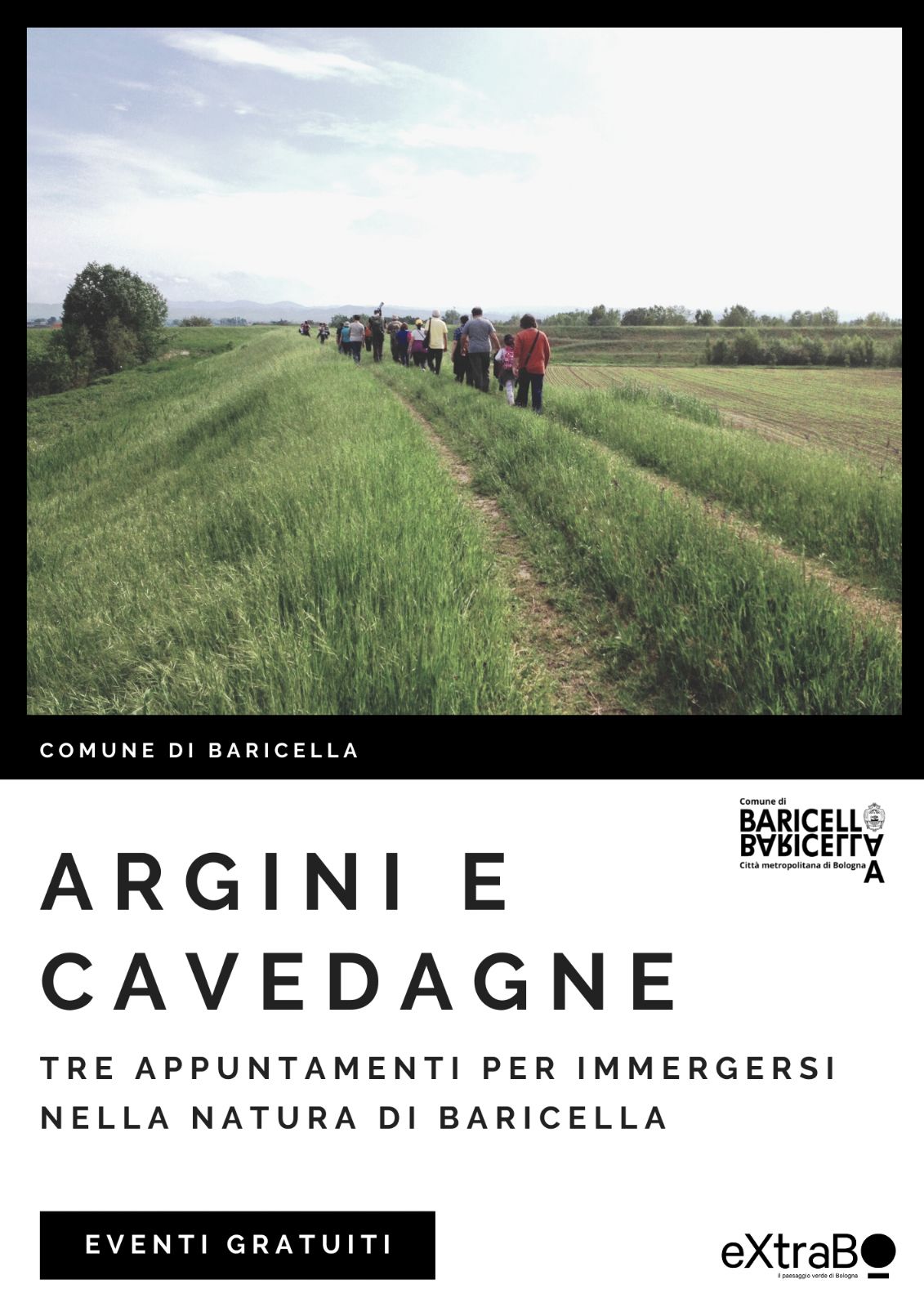 "Argini e cavedagne" è un progetto volto a far conoscere la bellezza della nostra campagna attraverso tre appuntamenti per immergersi nella natura di Baricella e delle sue frazioni.