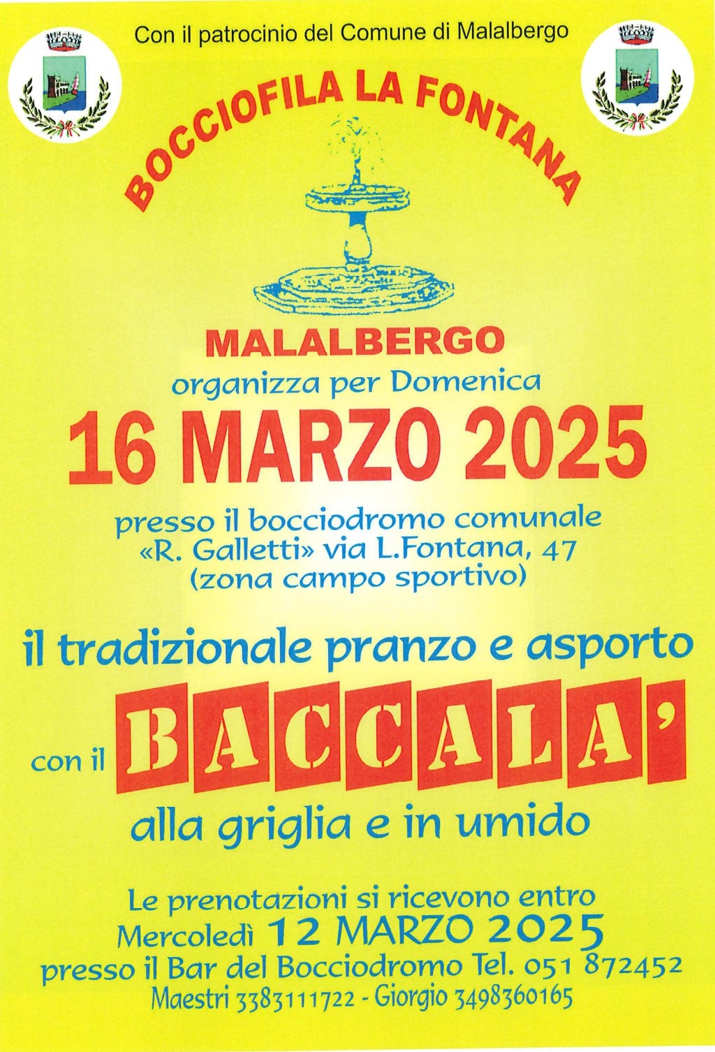 Pranzo e asporto Baccalà alla griglia e i umido presso la Bocciofila La Fontana