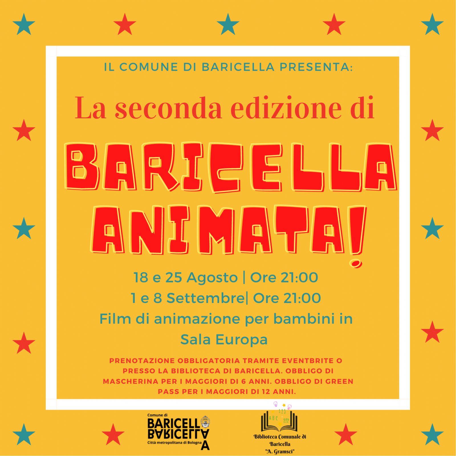 L'ingresso è gratuito fino ad esaurimento dei posti con prenotazione obbligatoria al link https://www.eventbrite.it/e/biglietti-baricella-animata-2-edizione-rassegna-cinematografica-estiva-per-bambini-166782836955