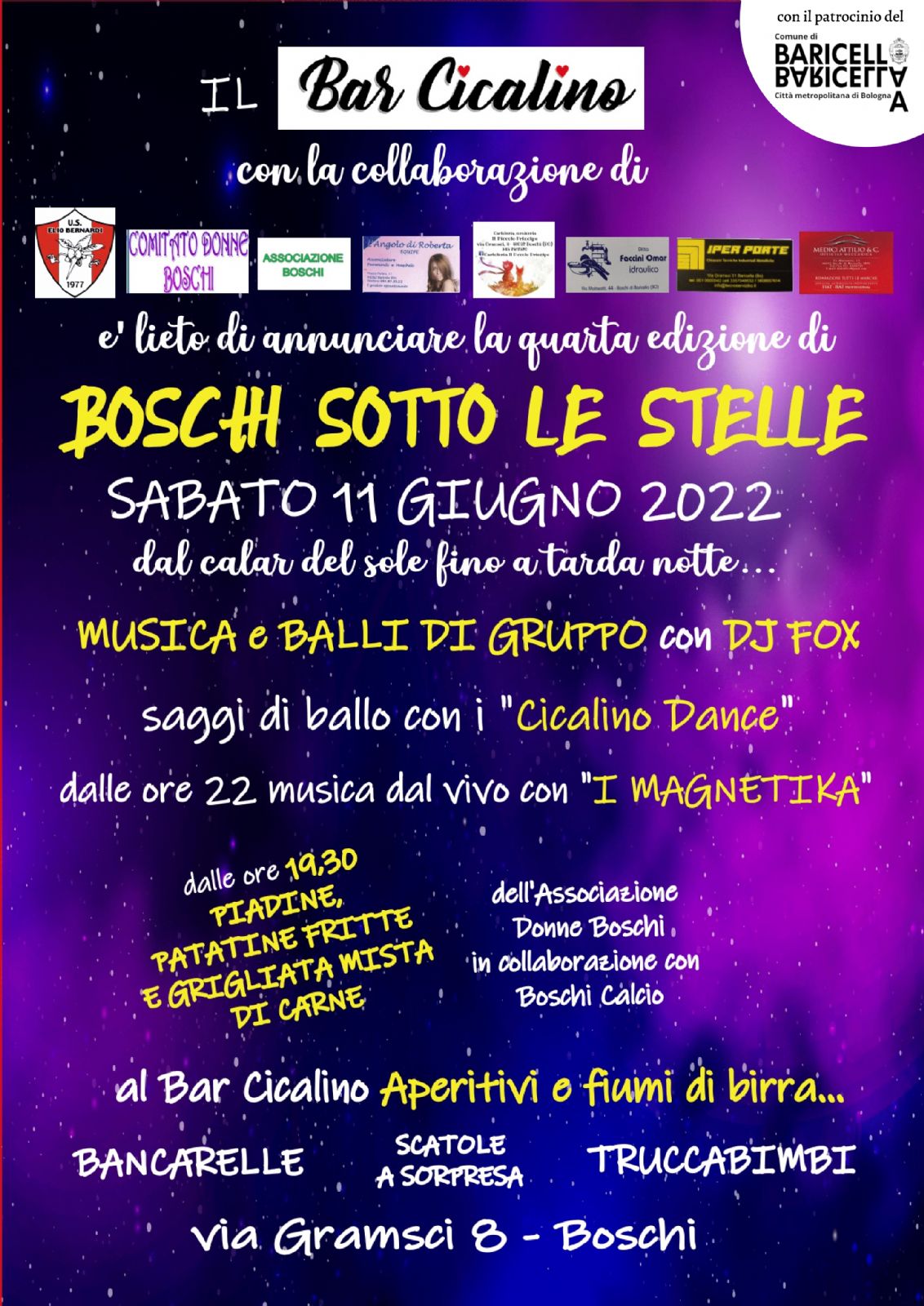 Con il patrocinio del Comune di Baricella, Sabato 11 Giugno 2022 a Boschi torna BOSCHI SOTTO LE STELLE!