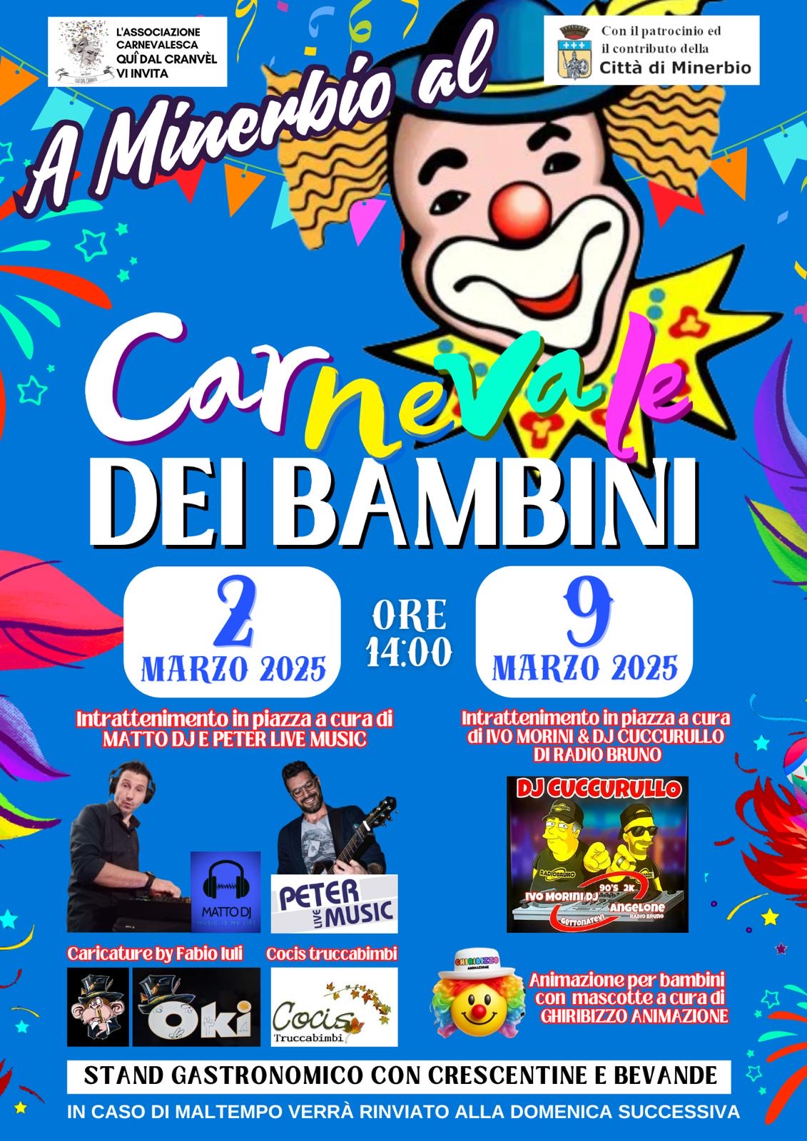 Domenica 2 marzo e domenica 9 marzo 2025 torna a Minerbio il CARNEVALE DEI BAMBINI!