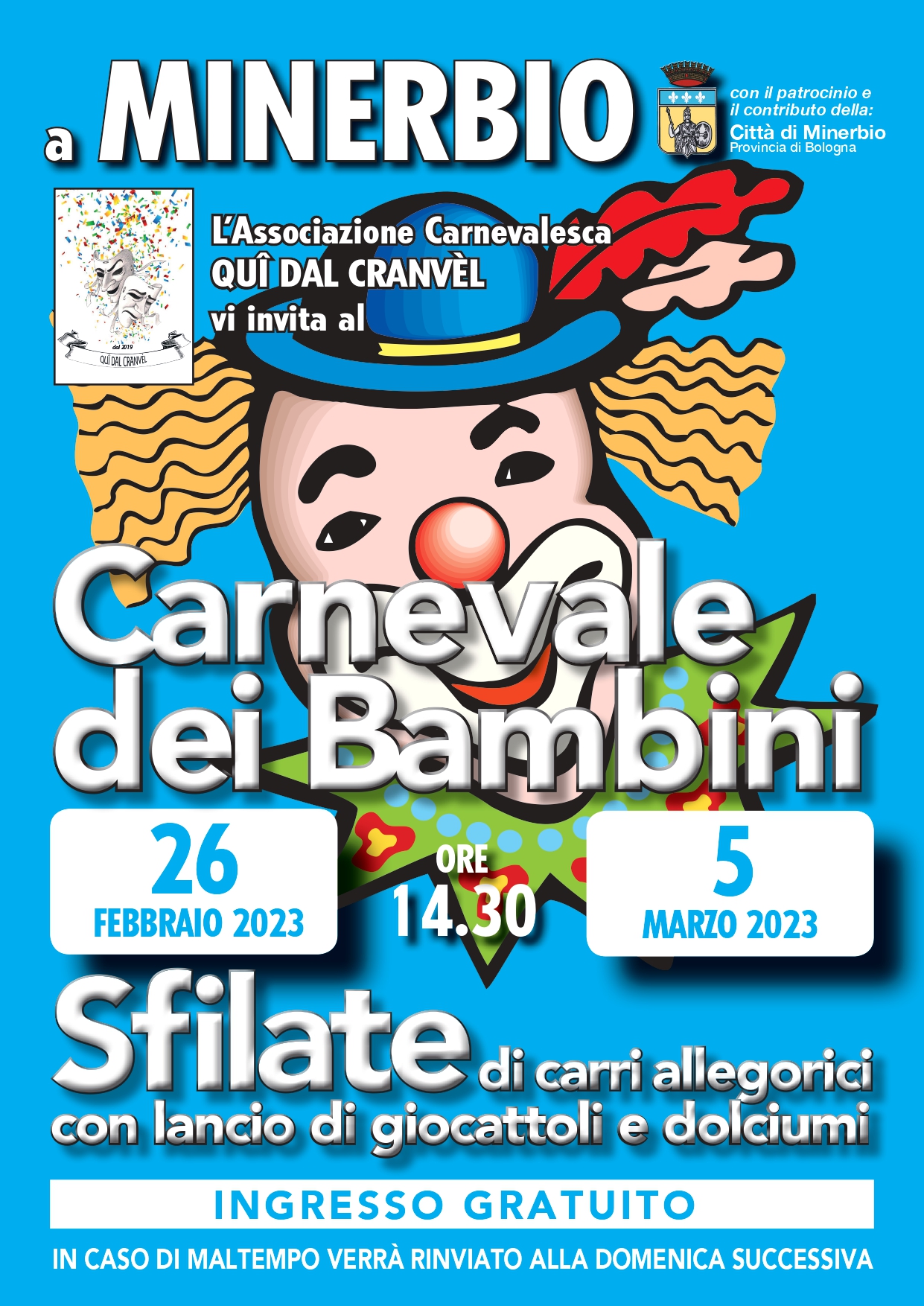 Domenica 26 febbraio e domenica 5 marzo 2023 torna a Minerbio il CARNEVALE DEI BAMBINI!