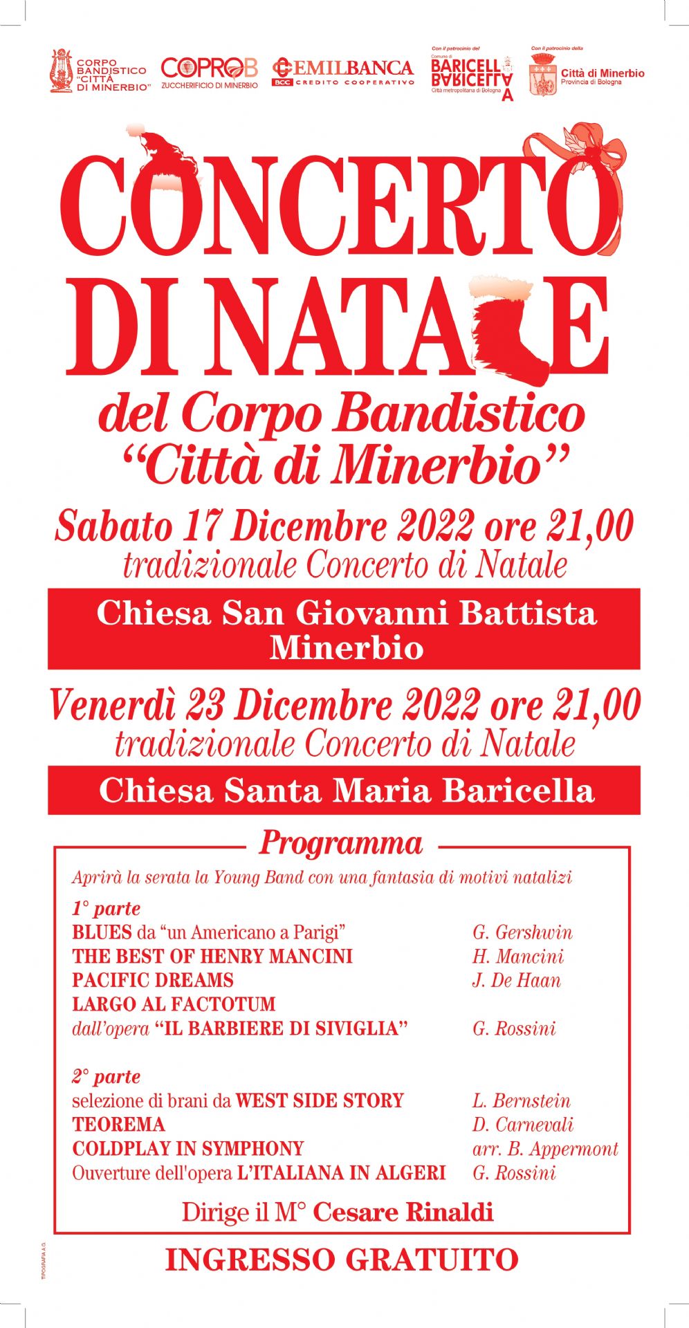 Sabato 17 Dicembre 2022 alle ore 21,00 si terrà il tradizionale Concerto di Natale del Corpo Bandistico Città di Minerbio presso la Chiesa San Giovanni Battista di Minerbio