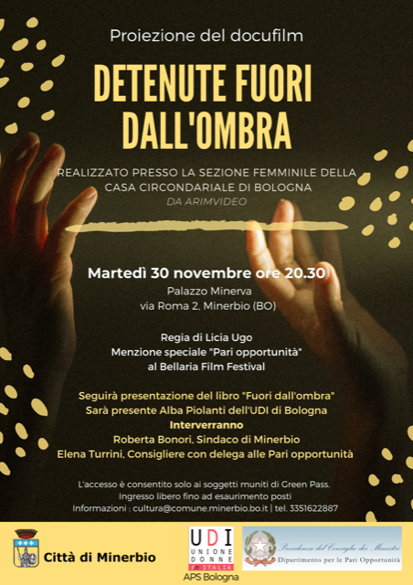 Martedì 30 novembre alle ore 20.30, presso Palazzo Minerva si svolgerà la proiezione del docufilm "Detenute fuori dall'ombra"(regia di Lucia Ugo) realizzato presso la sezione femminile della Casa Circondariale di Bologna e che ha vinto la "Menzione speciale" al Bellaria Film Festival.