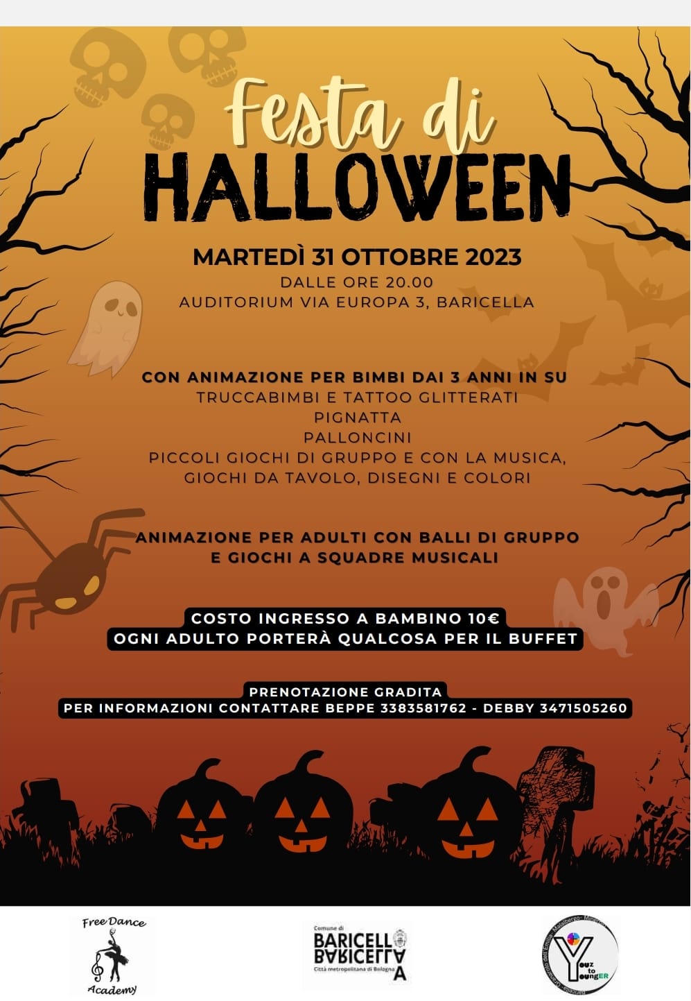 Non perdetevi la festa di Halloween a cura dell'Associazione Free Dance Academy che si terrà presso l'ex Auditorium sito in via Europa 1, Baricella.