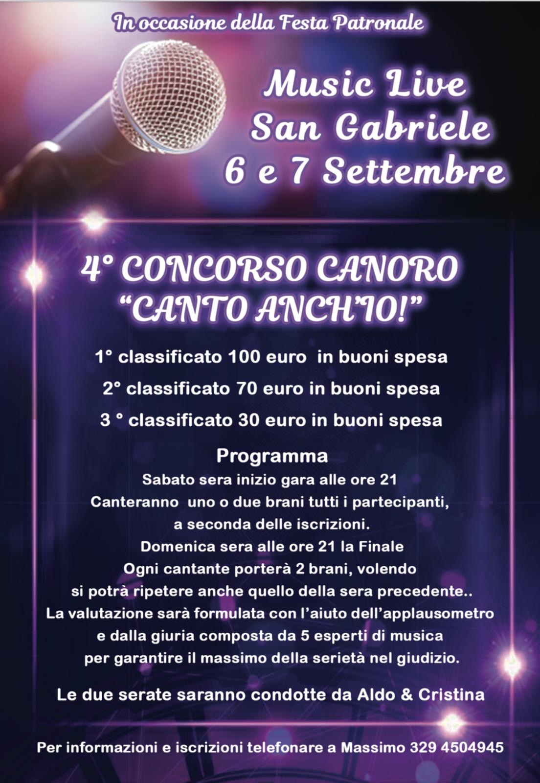 - Ore 21:00 - Inizio del IV Concorso canoro "Canto anch'io". Presentano Aldo e Cristina.