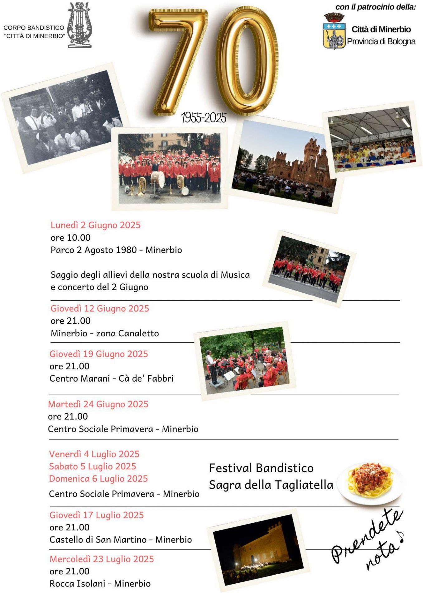Giovedì 17 luglio 2025 presso il Castello di San Martino di Minerbio si terrà un concerto sotto le stelle in occasione del 70° anniversario del Corpo Bandistico "Città di Minerbio"!