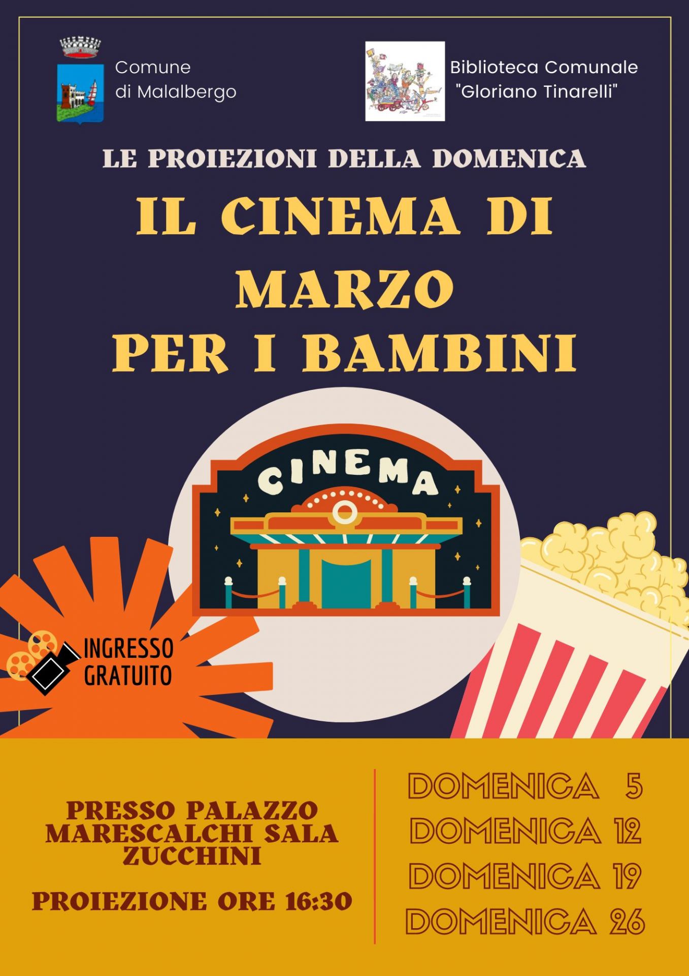 Il calendario delle "proiezioni a sorpresa" delle domeniche di Marzo in Sala Zucchini a Palazzo Marescalchi.