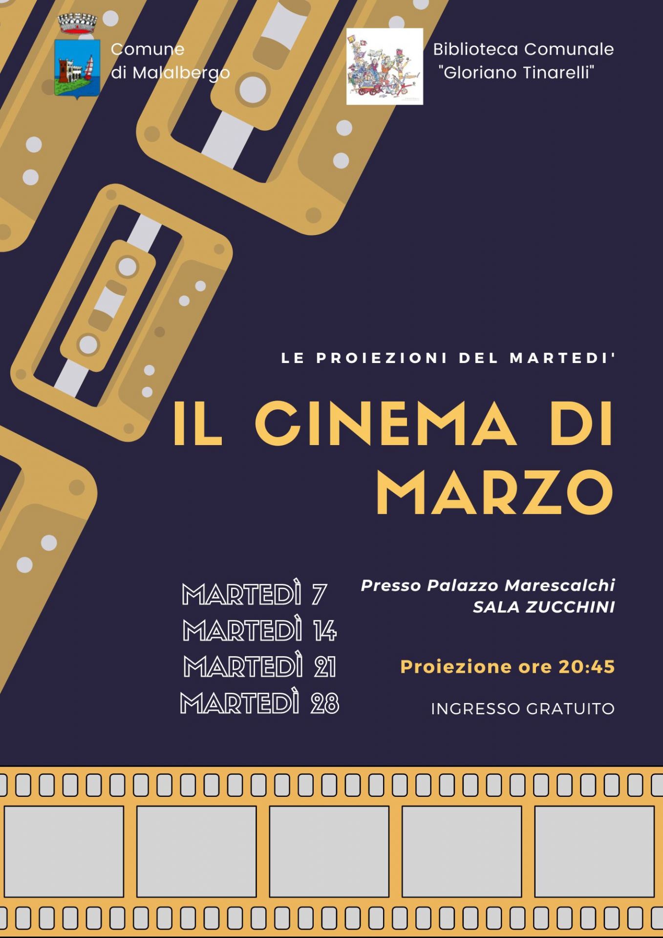 Il calendario delle "proiezioni a sorpresa" dei martedì di Marzo in Sala Zucchini a Palazzo Marescalchi.