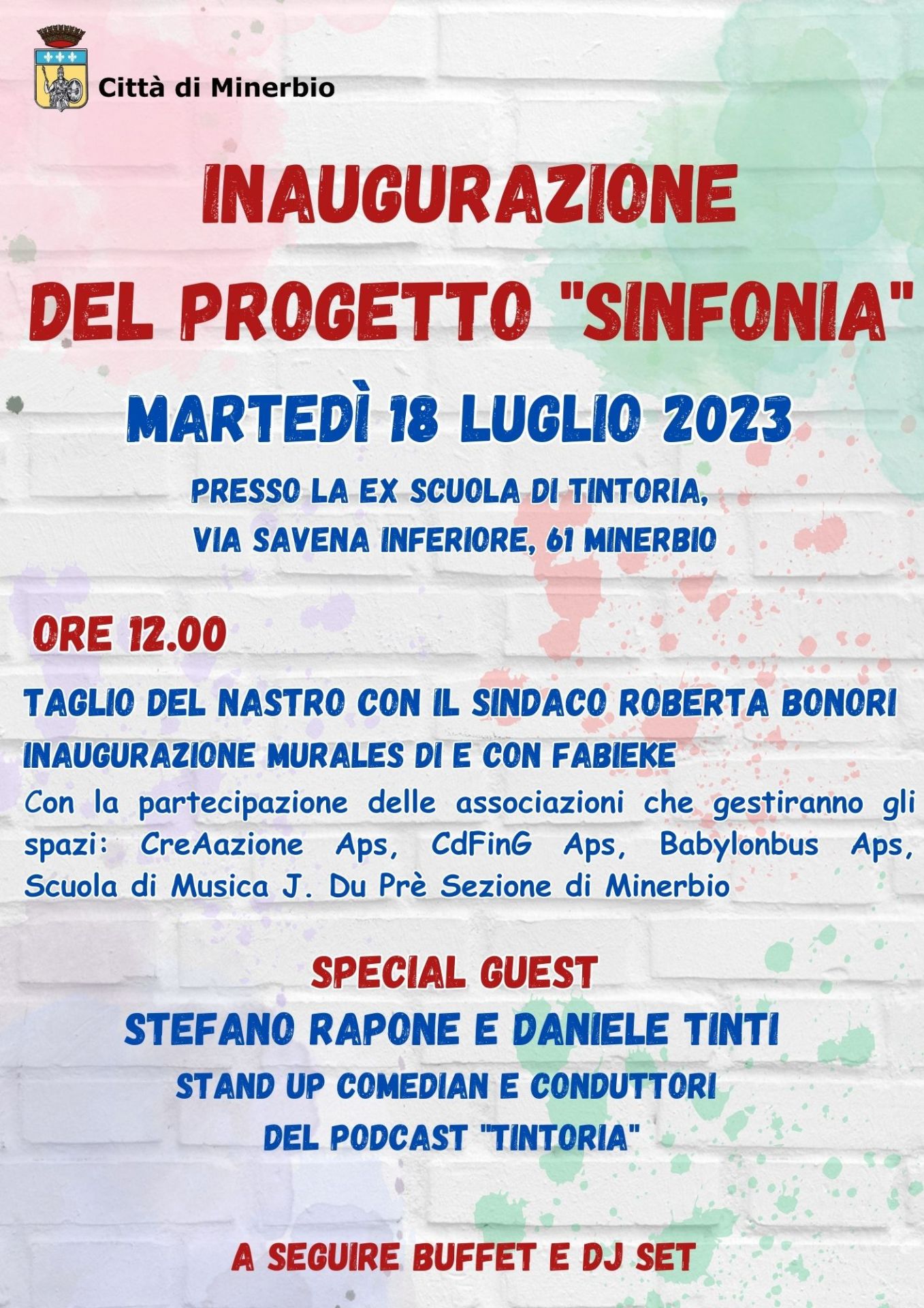 Martedì 18 luglio 2023 si terrà l'inaugurazione del progetto "SINFONIA" presso la ex scuola di Tintoria in via Savena Inferiore, 61.