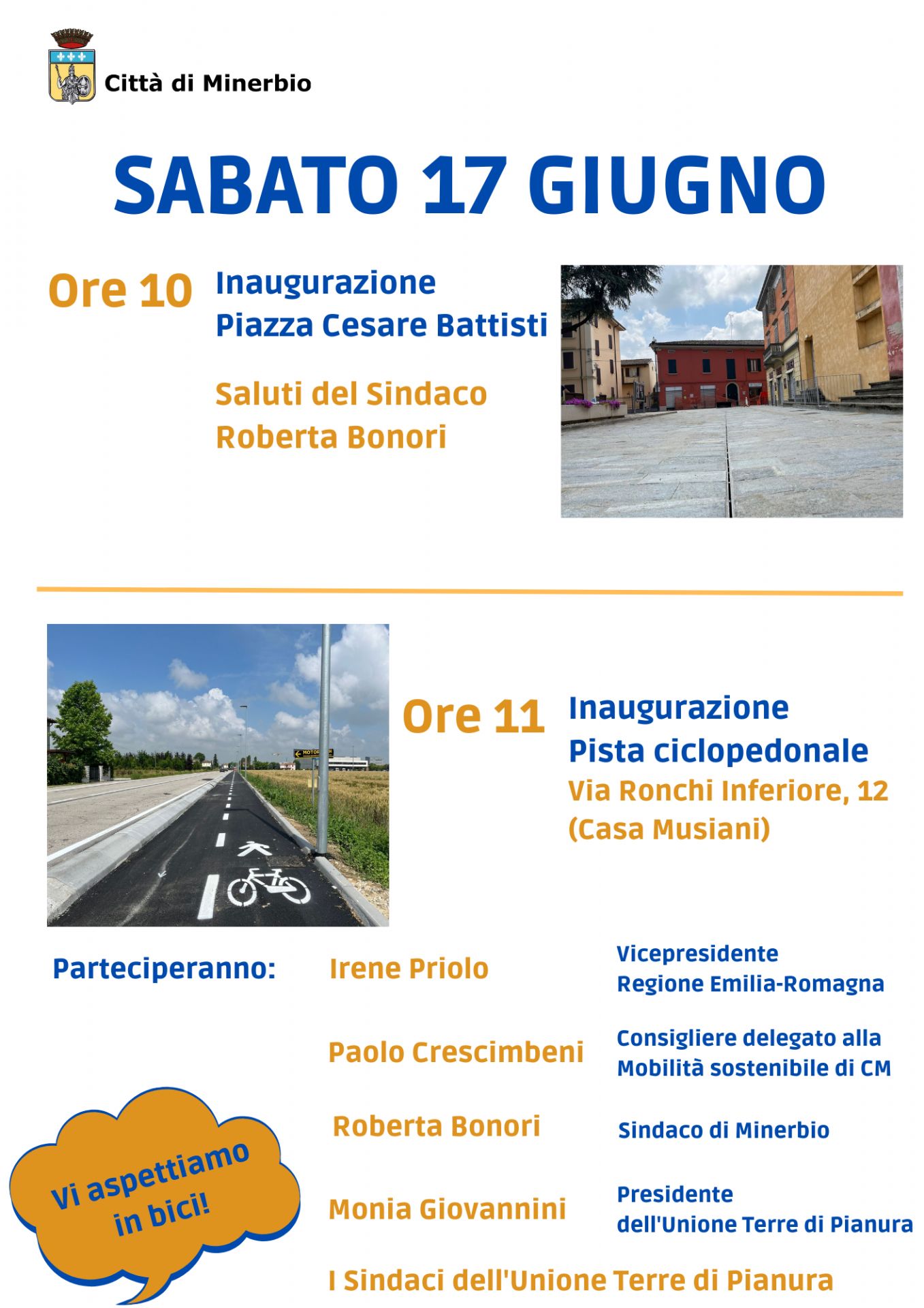 - ore 11 Inaugurazione della pista ciclopedonale in via Ronchi Inferiore, 12 (Casa Musiani)