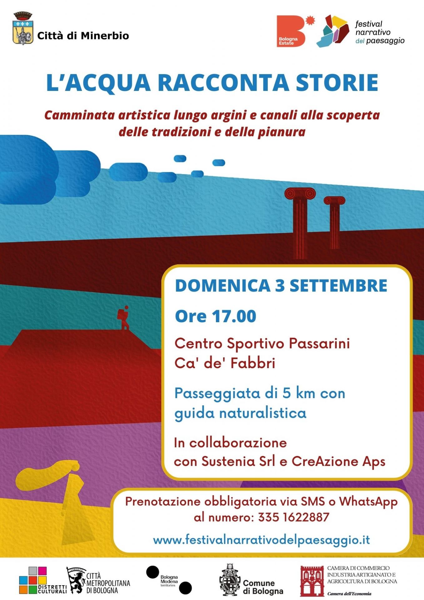All'interno del Festival del Paesaggio, il Comune di Minerbio ha organizzato: "L'acqua racconta storie"-Passeggiata artistica di 5 km lungo i corsi d'acqua di Ca' de' Fabbri, con guida naturalistica.