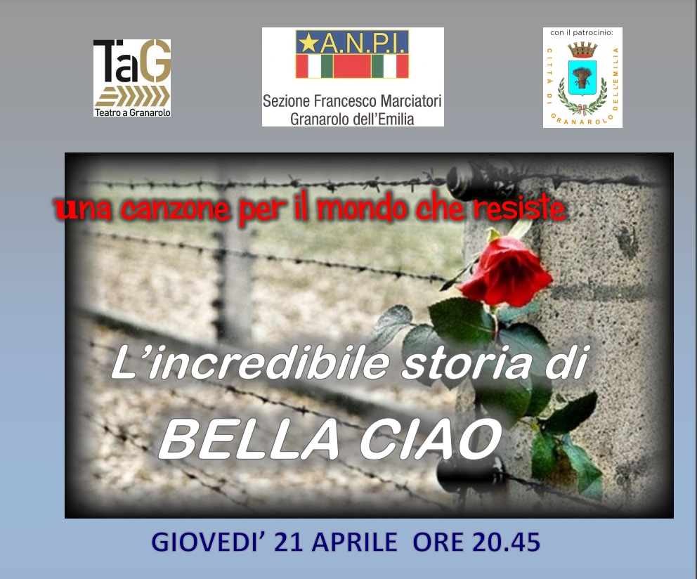 Giovedì 21 aprile, alle 20.45 presso il TaG - Teatro a Granarolo, si tiene la conferenza "Un inno per il mondo che resiste - La lunga storia di Bella Ciao", organizzata da ANPI.