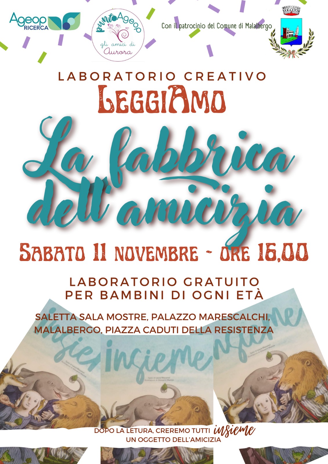 Sabato 11 Novembre alle ore 16:00 nella saletta adiacente alla sala mostre di Palazzo Marescalchi si svolgerà il Laboratorio la fabbrica dell'amicizia come da volantino in allegato.