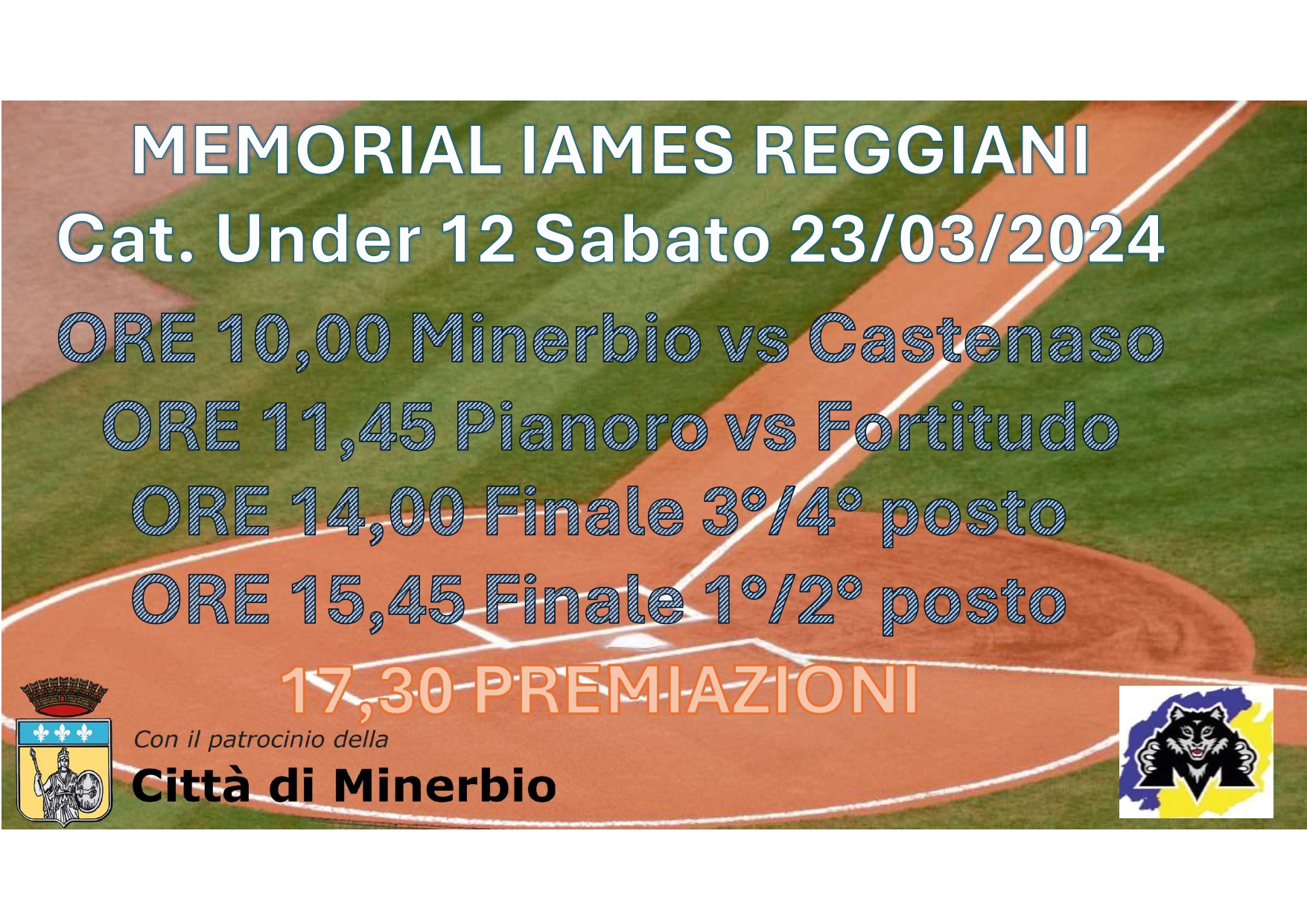 Sabato 23 e domenica 24 marzo 2024 presso il Campo da Baseball di Minerbio in via Don Zamboni si terrà il Memorial Iames Reggiani, organizzato dal BCM Baseball Club, con il patrocinio del Comune di Minerbio.