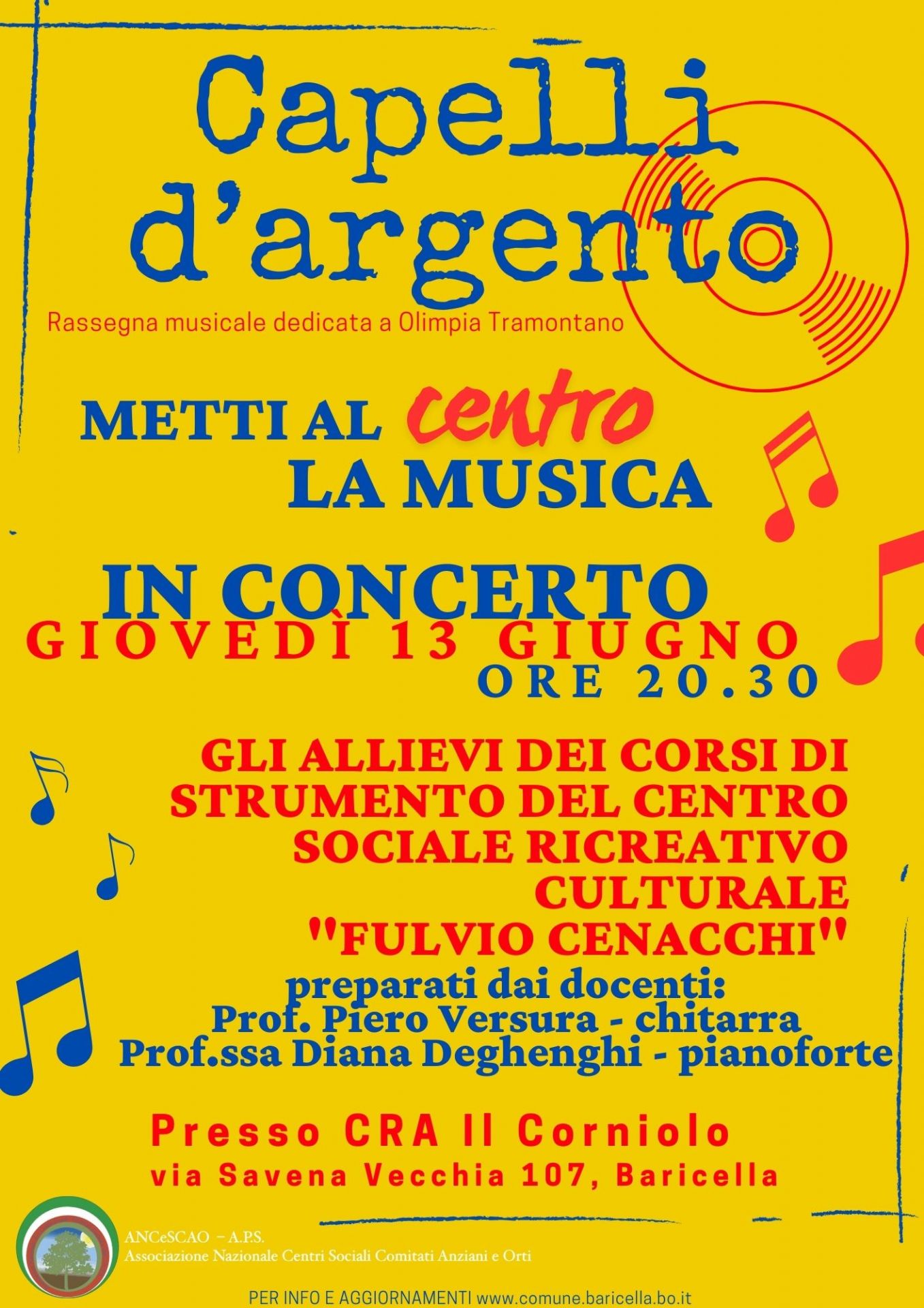 È con grande piacere che gli alunni dei corsi di strumento del Centro Sociale Ricreativo Culturale "Fulvio Cenacchi" di Altedo, tornano ad esibirsi per i gentili ospiti del Corniolo, che da sempre accolgono questi giovani musicisti con affetto ed entusiasmo!