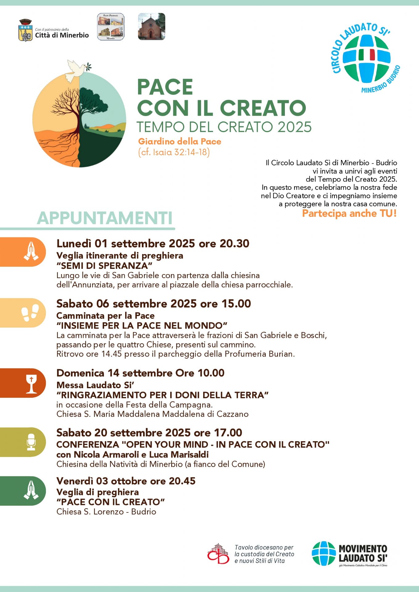 Il Circolo "Laudato Sì" di Minerbio, con il patrocinio del Comune, invita la cittadinanza a un incontro speciale, la conferenza “Open Your Mind – In pace con il creato” che vede come relatori Nicola Armaroli e Luca Marisaldi. La conferenza si propone, con la proiezione di video, di stimolare un cammino verso la consapevolezza ed il pensiero critico.