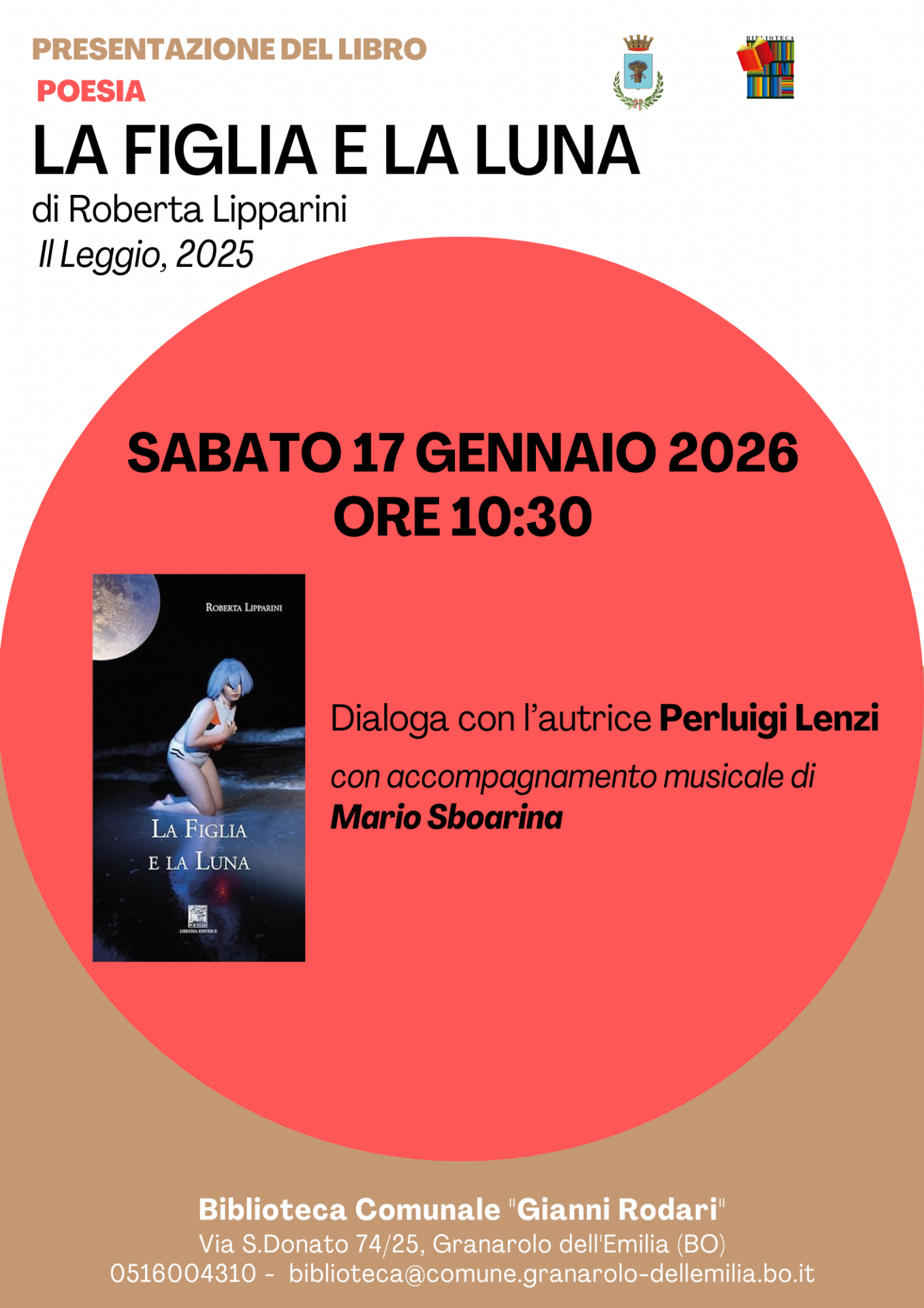Sabato 17 gennaio 2026, alle ore 10.30, la Biblioteca Comunale “Gianni Rodari” di Granarolo dell’Emilia ospita la presentazione del libro di poesia La figlia e la luna di Roberta Lipparini, edito da Il Leggio nel 2025.