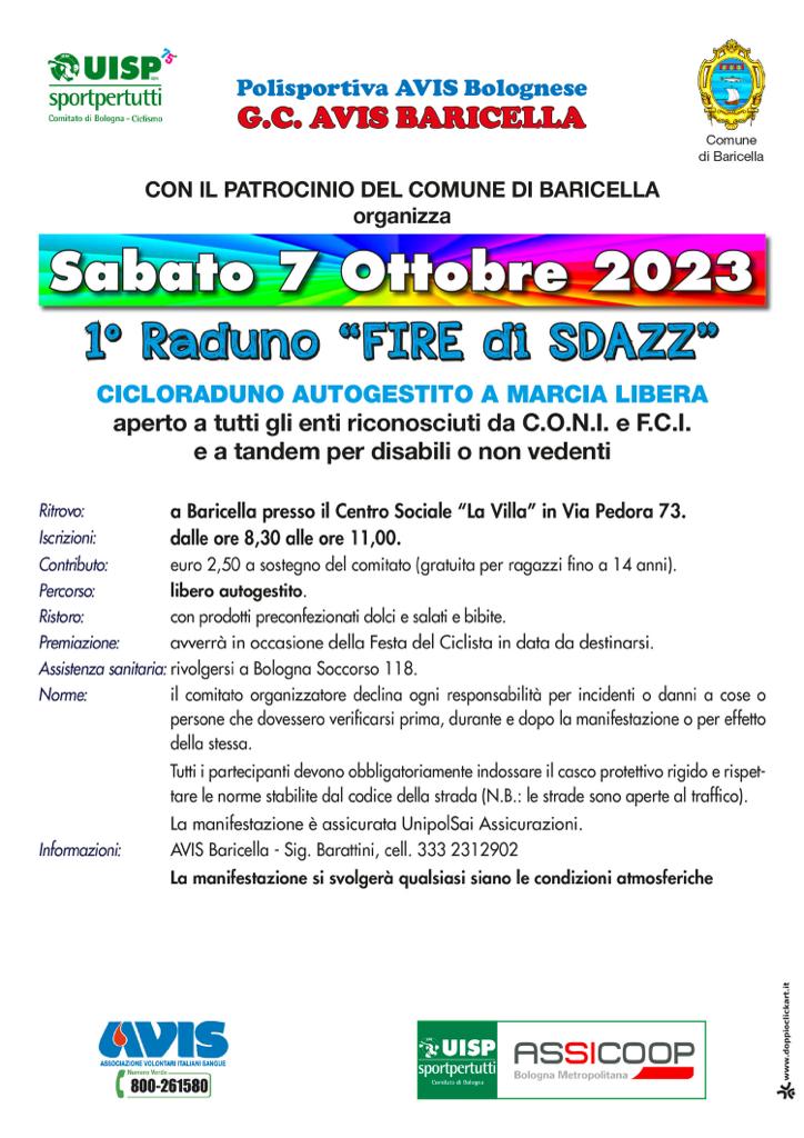 Prima manifestazione sportiva della Fire di Sdazz Sabato 7 Ottobre 2023 con il Cicloraduno autogestito a marcia libera organizzato dalla Polisportiva AVIS Bolognese - G.C. AVIS BARICELLA.
