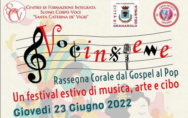 Una nuova iniziativa tutta da ascoltare e da gustare! Fortemente voluta dal Centro di Formazione Integrata “Suono Corpo Voce”, in collaborazione con il Ristorante-Trattoria "Da Zia Allari", con il Patrocinio del Comune di Granarolo dell'Emilia , nasce la Prima Edizione della Rassegna “Vocinsieme”, dedicata alle corali con repertorio pop-gospel e al connubio tra gastronomia e musica.