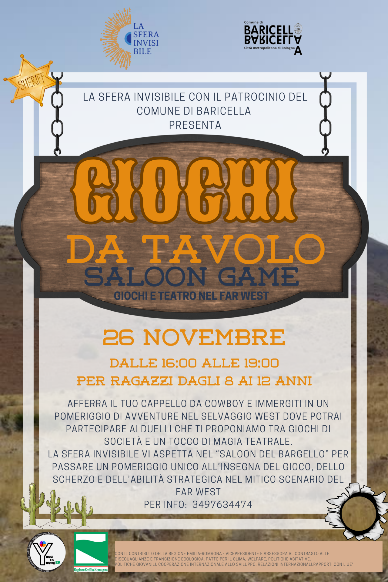 Il 26 novembre, dalle 16 alle 19, Sala Europa presso il Bargello sarà trasformata in un saloon del Vecchio West, pronto ad accogliere i giovani pistoleros e le intraprendenti cowgirls per un evento unico nel suo genere: Saloon Game. L'iniziativa, organizzata dalla Sfera Invisibile e la compagnia teatrale Avanguardia Pium Pium, promette di catapultare i partecipanti in un'atmosfera avvincente e coinvolgente, tipica dei saloon western.