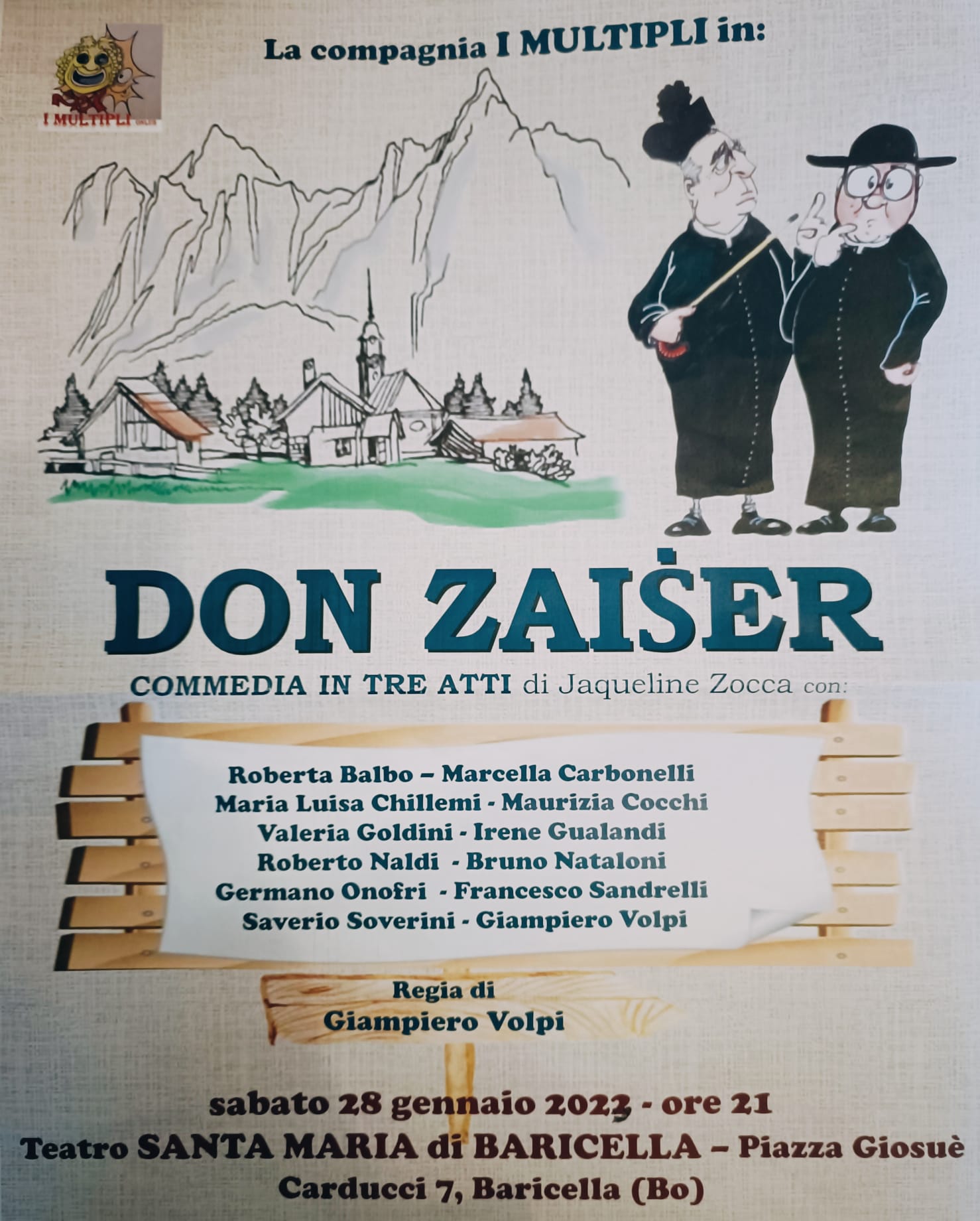 Per la stagione teatrale del Cinema - Teatro Santa Maria di Baricella, Sabato 28 Gennaio alle 21:00, la Compagnia "I Multipli" presenta lo spettacolo DON ZAISER: commedia in tre atti di Jaqueline Zocca - Regia di Giampiero Volpi.
