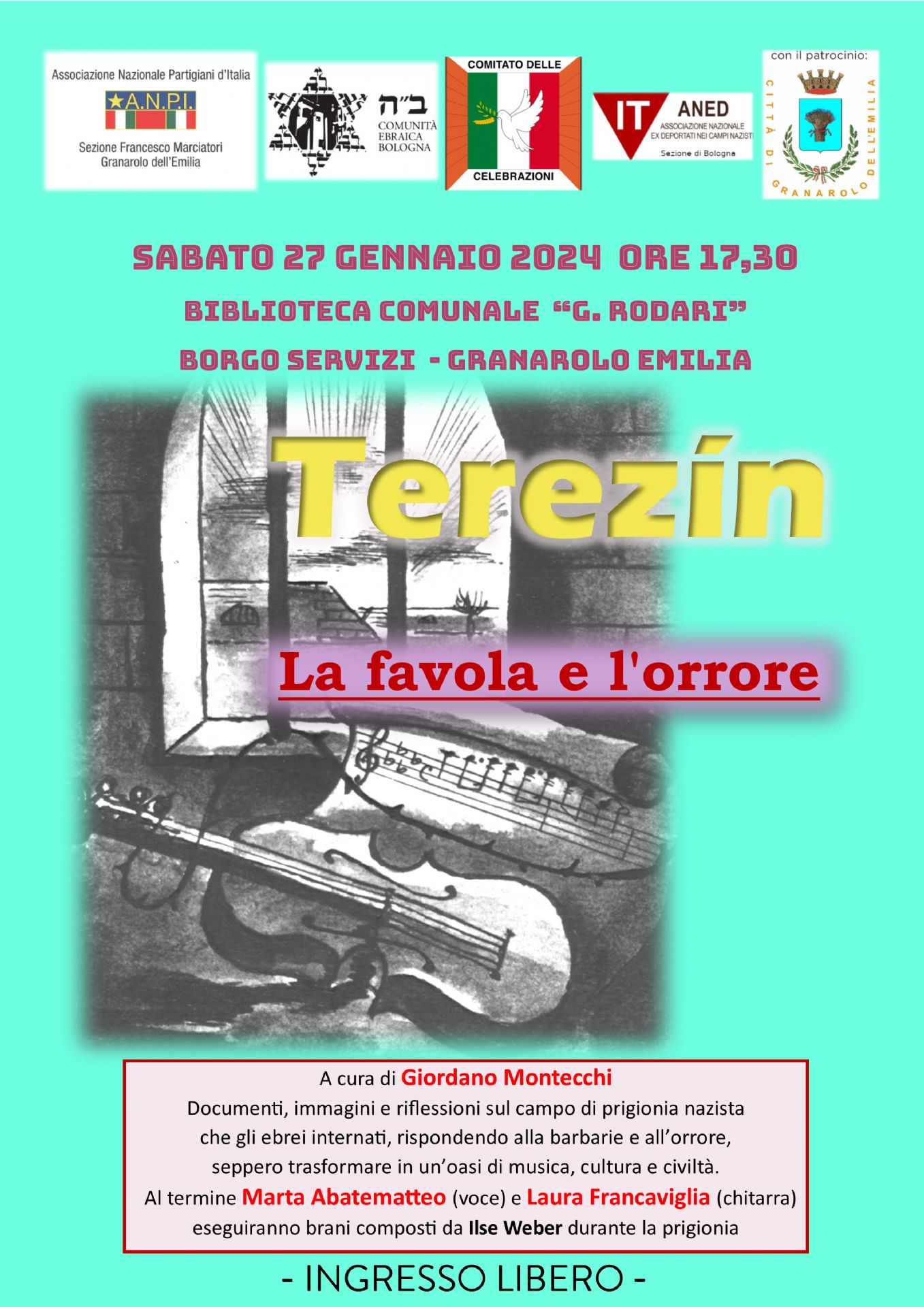 Al termine le musiciste, Marta Abatematteo (voce) e Laura Francaviglia (chitarra) interpteteranno alcune canzoni create a Terezín dalla poetessa e scrittrice Ilse Weber (1903-1944).