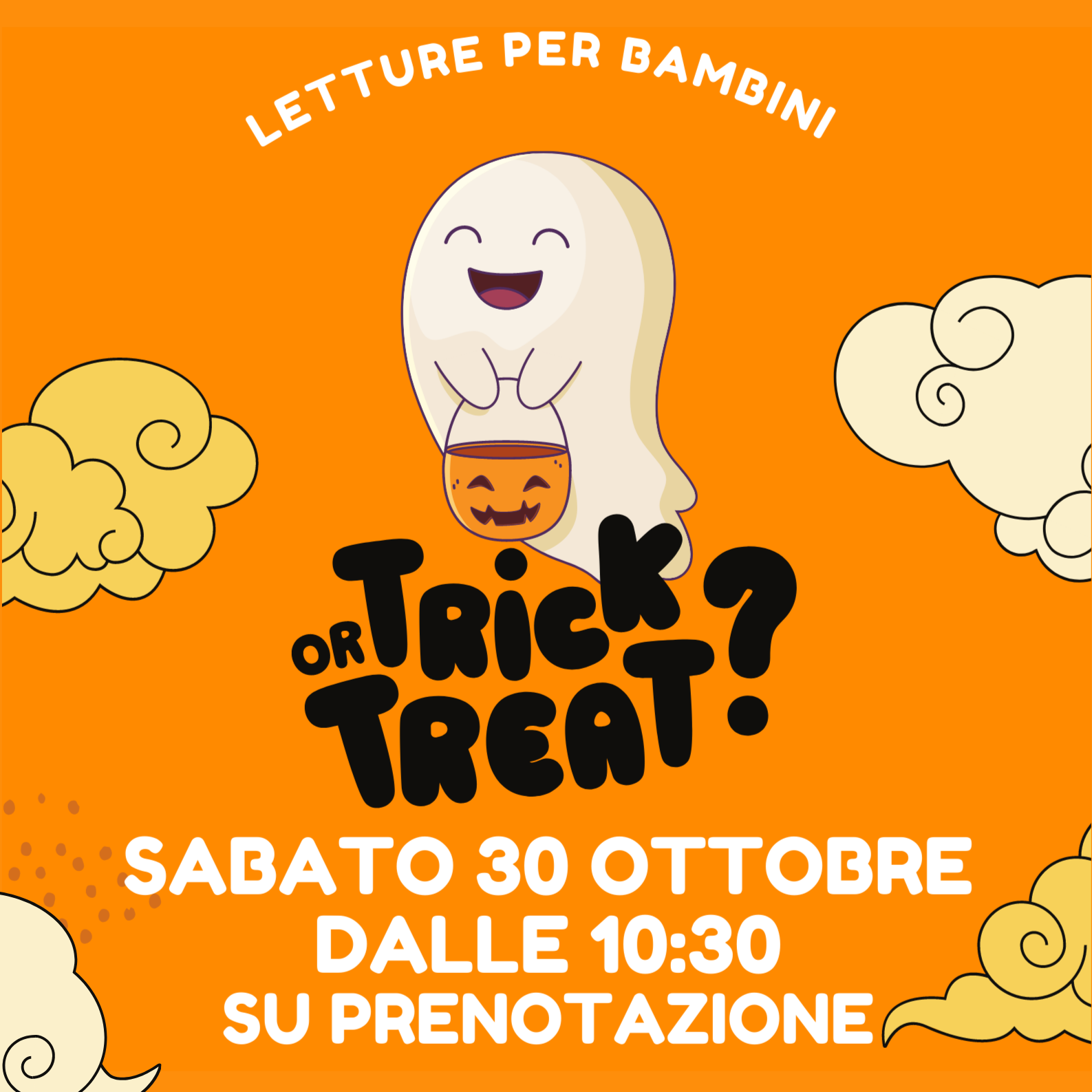 Sabato 30 ottobre dalle 10.30, presso la Biblioteca Comunale Prometeo, si terrà "Trik or treat": letture per bambini.