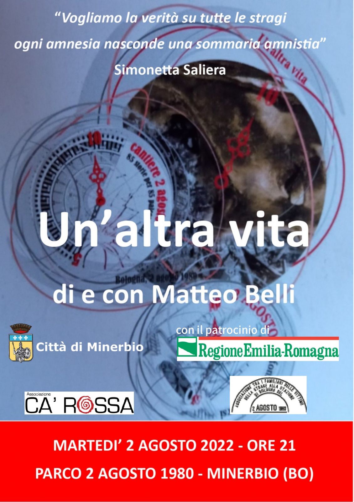 A Minerbio celebreremo i 42 anni dalla strage della Stazione di Bologna con uno spettacolo che racconta la vita delle 85 vittime e di chi da quell'orrore si è salvato.