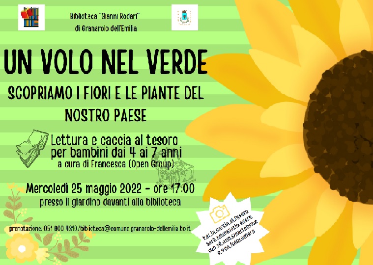 Mercoledì 25 maggio la Festa dell'Ambiente Verdevolo inizia con un'anteprima nel giardino davanti alla biblioteca Rodari, al Borgo Servizi. Alle 17 Maria Francesca Resca di Open Group terrà una lettura con caccia al tesoro a tema natura dal titolo "Un volo nel verde". L'obiettivo è andare alla scoperta di fiori e piante del territorio.