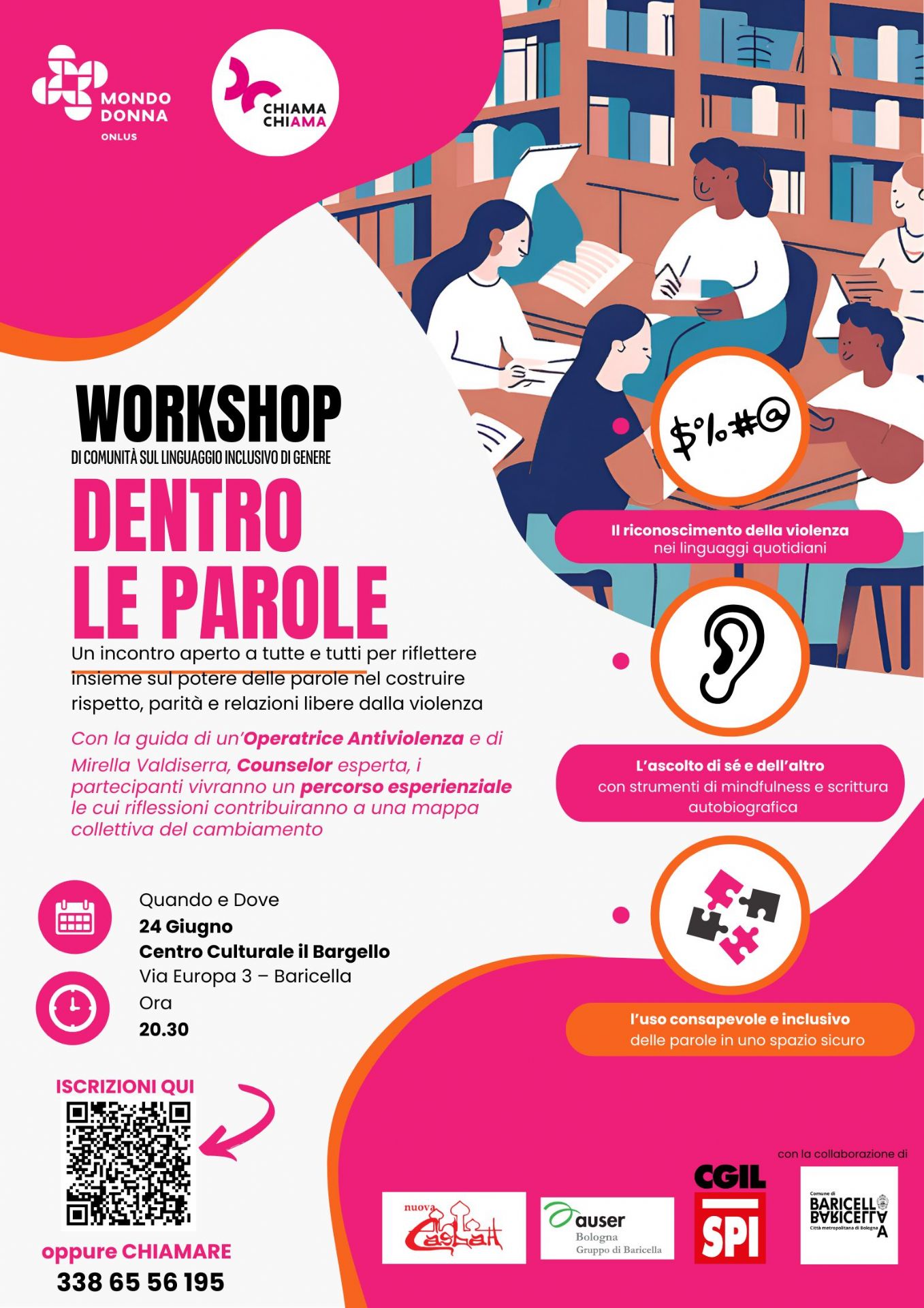 MondoDonna Onlus in collaborazione con il Comune di Baricella, Nuova Casbah Asd, Auser e SPI CGIL promuove un incontro pubblico dal titolo “Workshop di Comunità sul Linguaggio Inclusivo di Genere”, un’occasione di riflessione collettiva sul potere delle parole nel costruire relazioni rispettose, paritarie e libere dalla violenza.