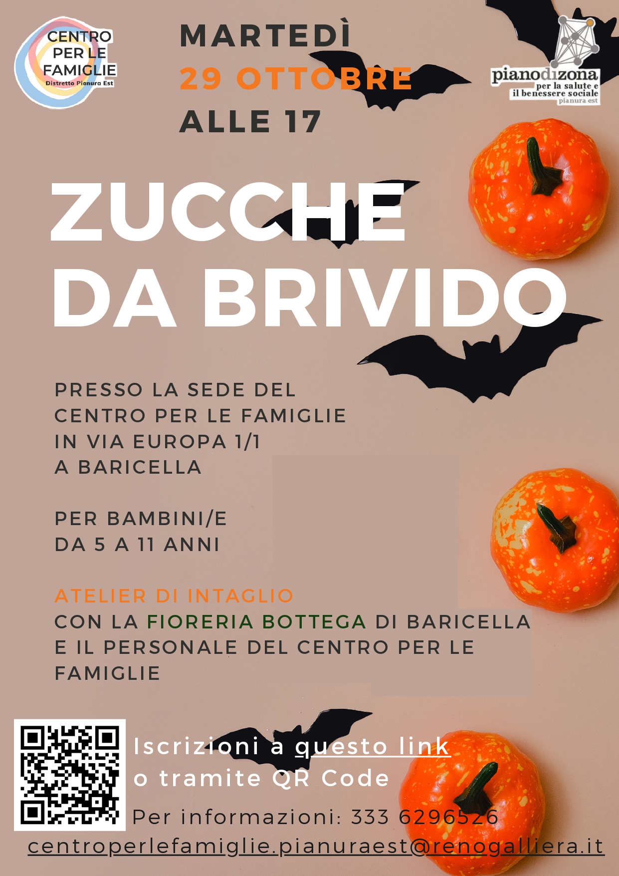 Martedì 29 ottobre alle ore 17.00 Atelier di intaglio della zucca presso la sede del Centro per le Famiglie a Baricella, per bambini/e dai 5 agli 11 anni, proposto dal Centro per le famiglie in collaborazione con la Fioreria Bottega di Baricella. Durante il laboratorio, i partecipanti avranno l'opportunità di scolpire e decorare la propria zucca di Halloween. Entrata libera ma è gradita l'iscrizione cliccando qui