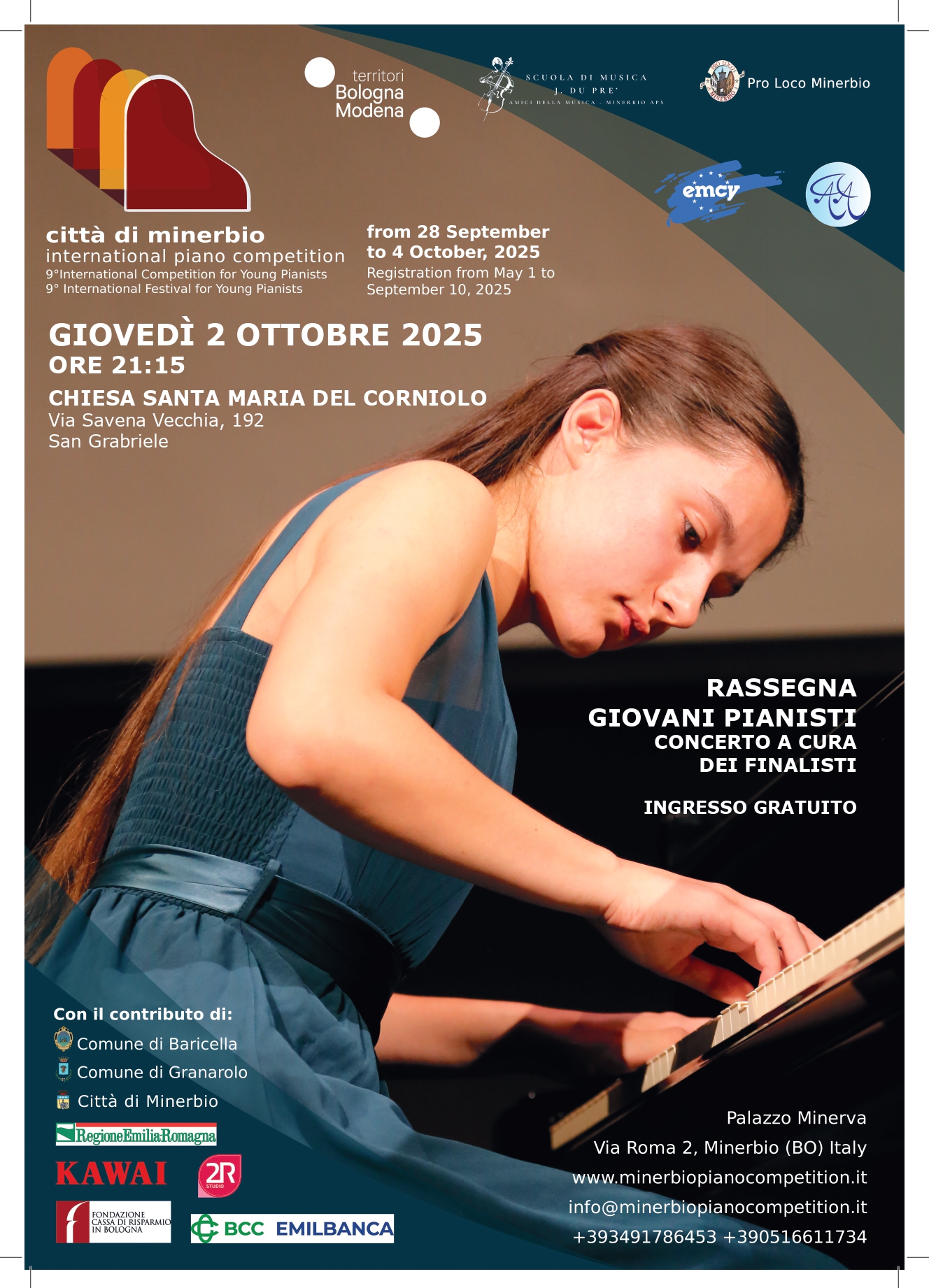 L’evento è promosso dall’Associazione Amici della Musica – Scuola J. Du Prè, con il sostegno dei Comuni coinvolti e della Regione Emilia Romagna, a conferma del valore della musica nel tessuto locale. Un’occasione unica per sostenere i giovani pianisti e lasciarsi emozionare dalla musica dal vivo.
