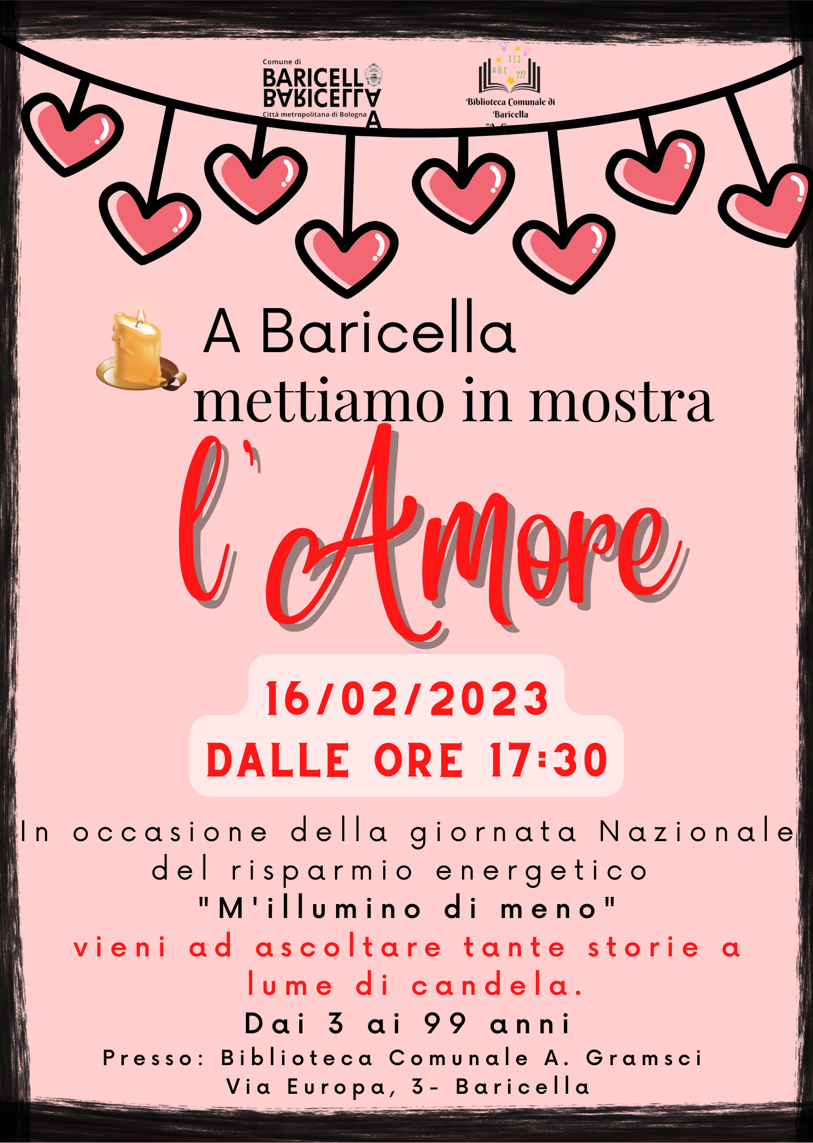 Il 16 febbraio 2023 alle ore 17:30, inoltre, è previsto un pomeriggio di letture a lume di candela (anche in vista di “M’illumino di meno 2023, Giornata Nazionale del Risparmio Energetico e degli Stili di Vita Sostenibili*.
