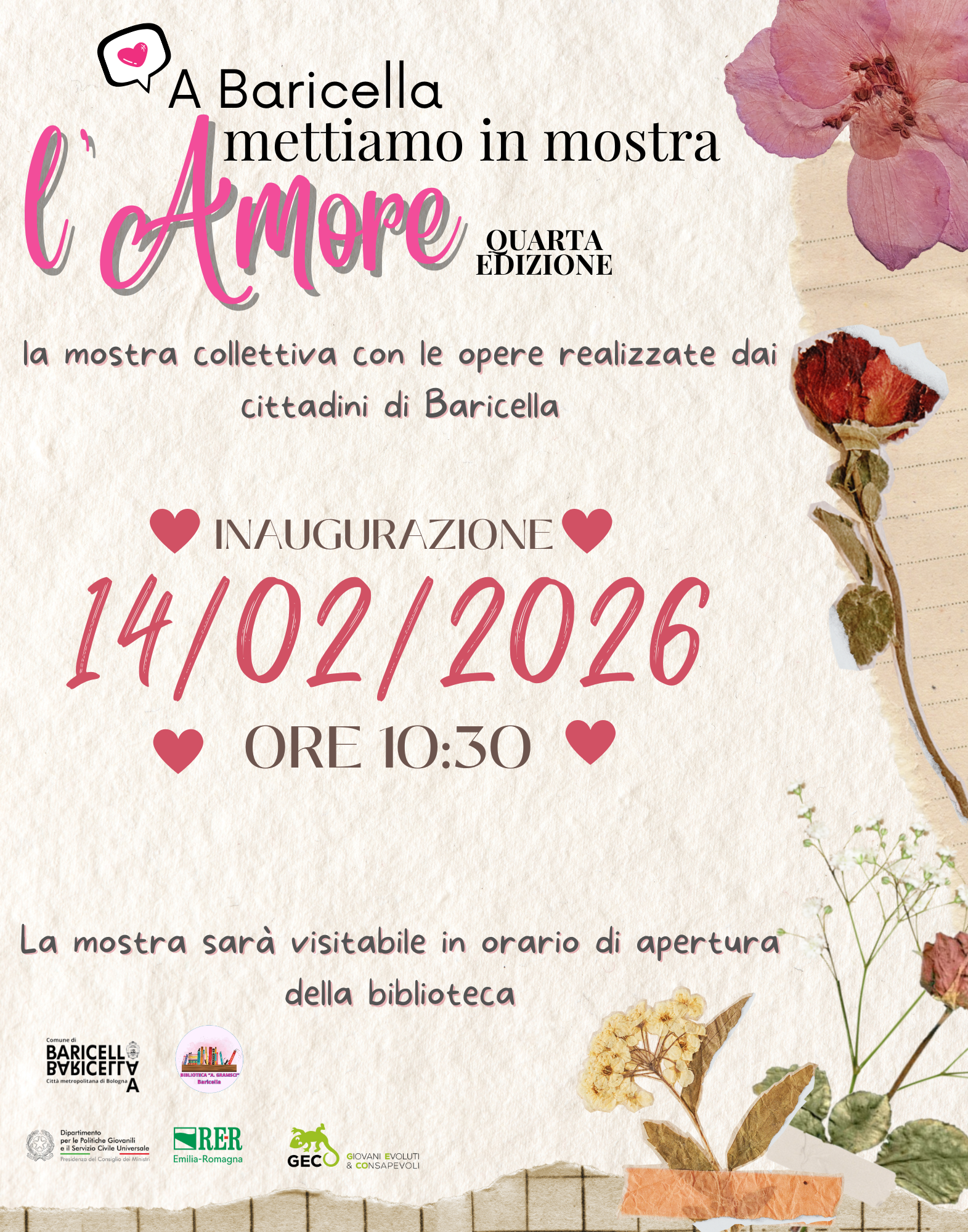 Dopo il successo delle scorse edizioni anche quest’anno torna la collettiva “A Baricella mettiamo in mostra l'Amore”!