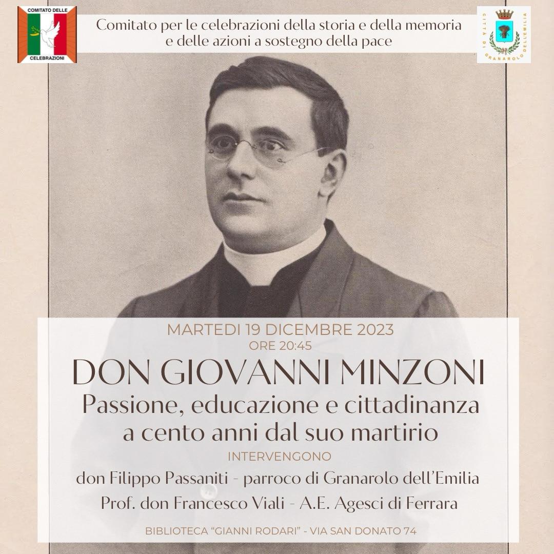 "Don Minzoni: passione, educazione e cittadinanza a cento anni dal suo martirio". In biblioteca comunale Rodari, interverranno alle ore 20.45 don Filippo Passaniti, parroco di Granarolo dell'Emilia, e il prof. don Franscesco Viali dell'Agesci di Ferrara.
