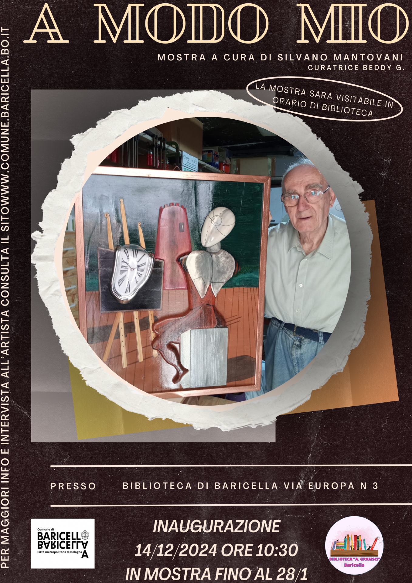 Il 14 dicembre alle ore 10:30 inaugurerà nella Galleria Magnanini, presso Centro Culturale "Il Bargello" sito in via Europa 3, la mostra del nostro concittadino Silvano Mantovani.