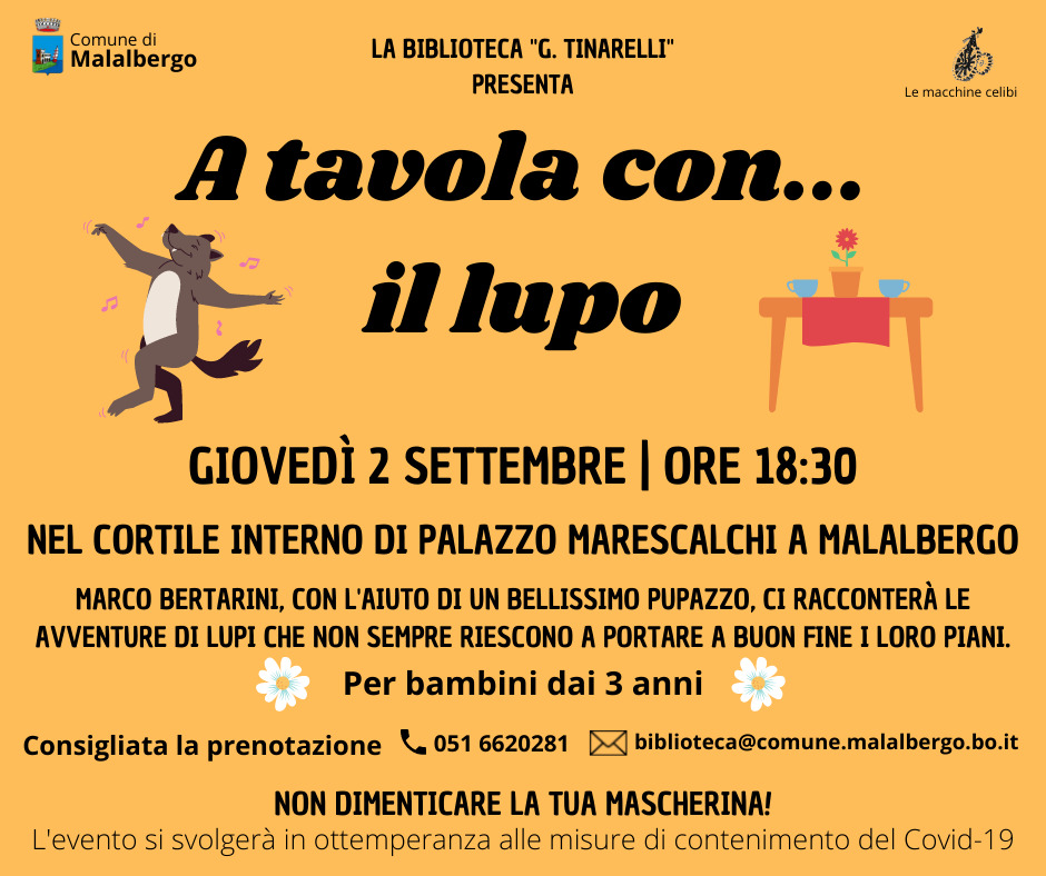 Il contastorie ha invitato a tavola un timido lupo per fare conoscere lui e i suoi parenti agli