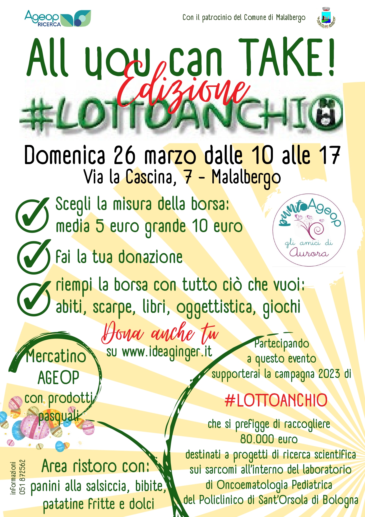 Un evento organizzato da AGEOP Ricerca e Punto AGEOP "Gli Amici di Aurora" per regalare nuova vita ad abiti, accessori ed oggetti di seconda mano e allo stesso tempo sostenere i progetti di Ageop.