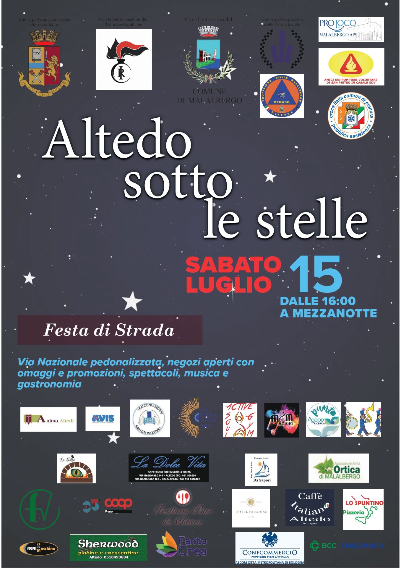 Sabato 15 Luglio dalle 16:00 a mezzanotte "Altedo Sotto le Stelle" la festa di strada organizzata dalla Proloco di Malalbergo, con la collaborazione dei commercianti e la partecipazione delle associazioni locali.