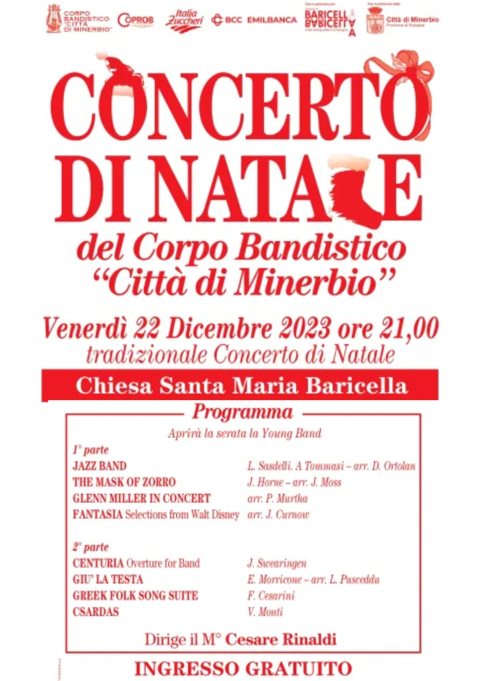 •Venerdì 22 Dicembre ore 21:00 TRADIZIONALE CONCERTO DI NATALE🎅🏼 del Corpo Bandistico di Minerbio presso la chiesa Santa Maria di Baricella.