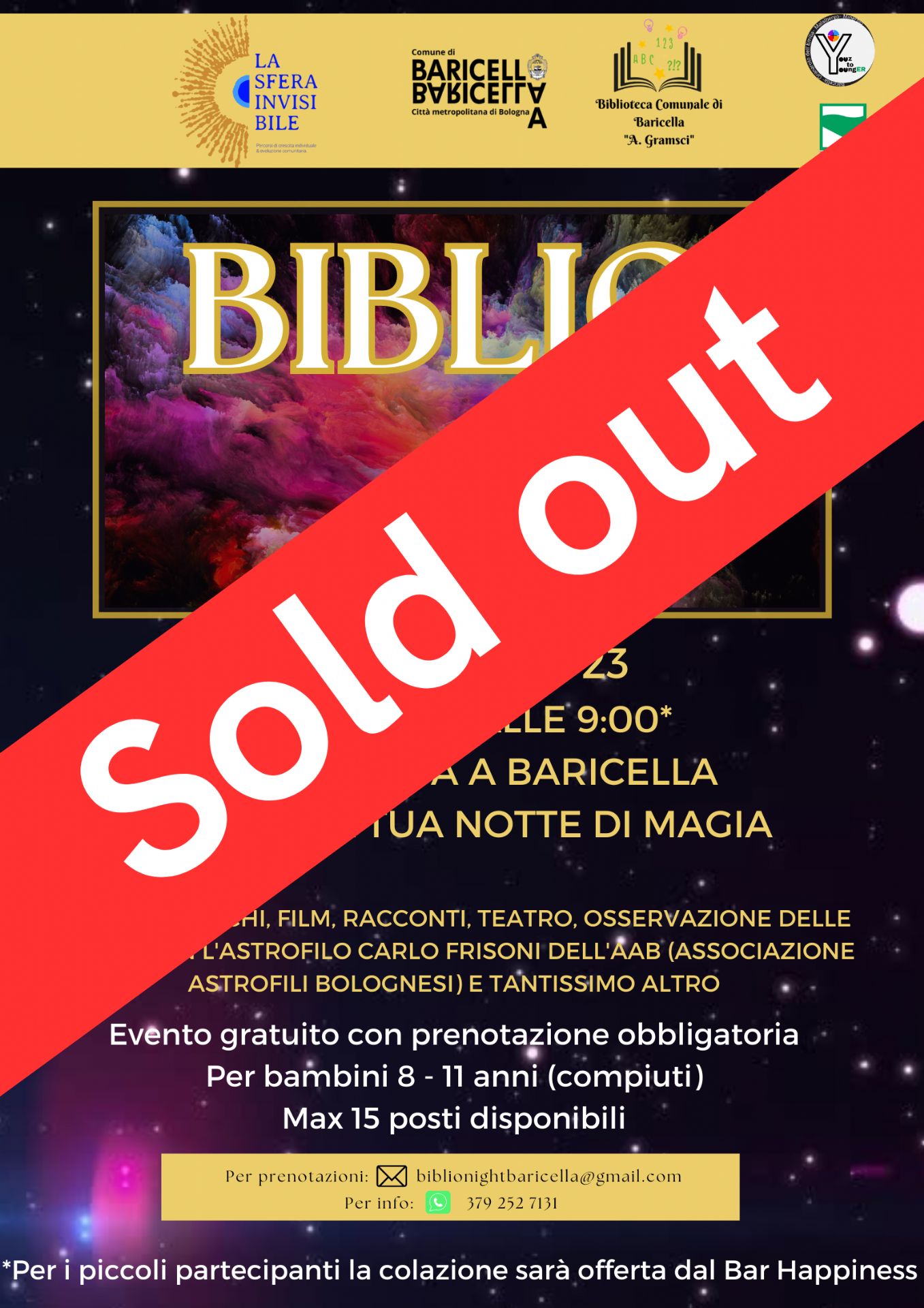 Per prenotazioni scrivi a: biblionightbaricella@gmail.com