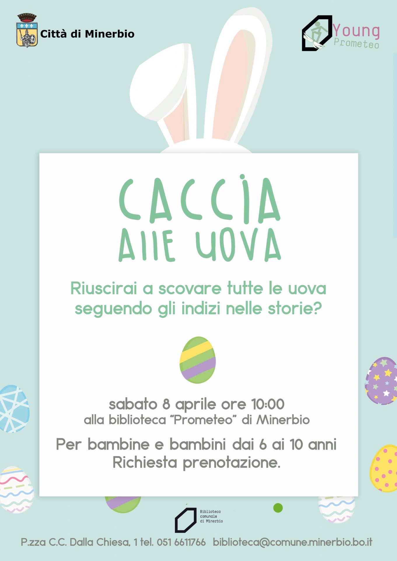 Sabato 8 aprile 2023 alle ore 10.00 presso la Biblioteca Comunale Prometeo di Minerbio si svolgerà la Caccia alle uova! Riusciranno tutti bambini a trovare le uova seguendo gli indizi nelle storie?