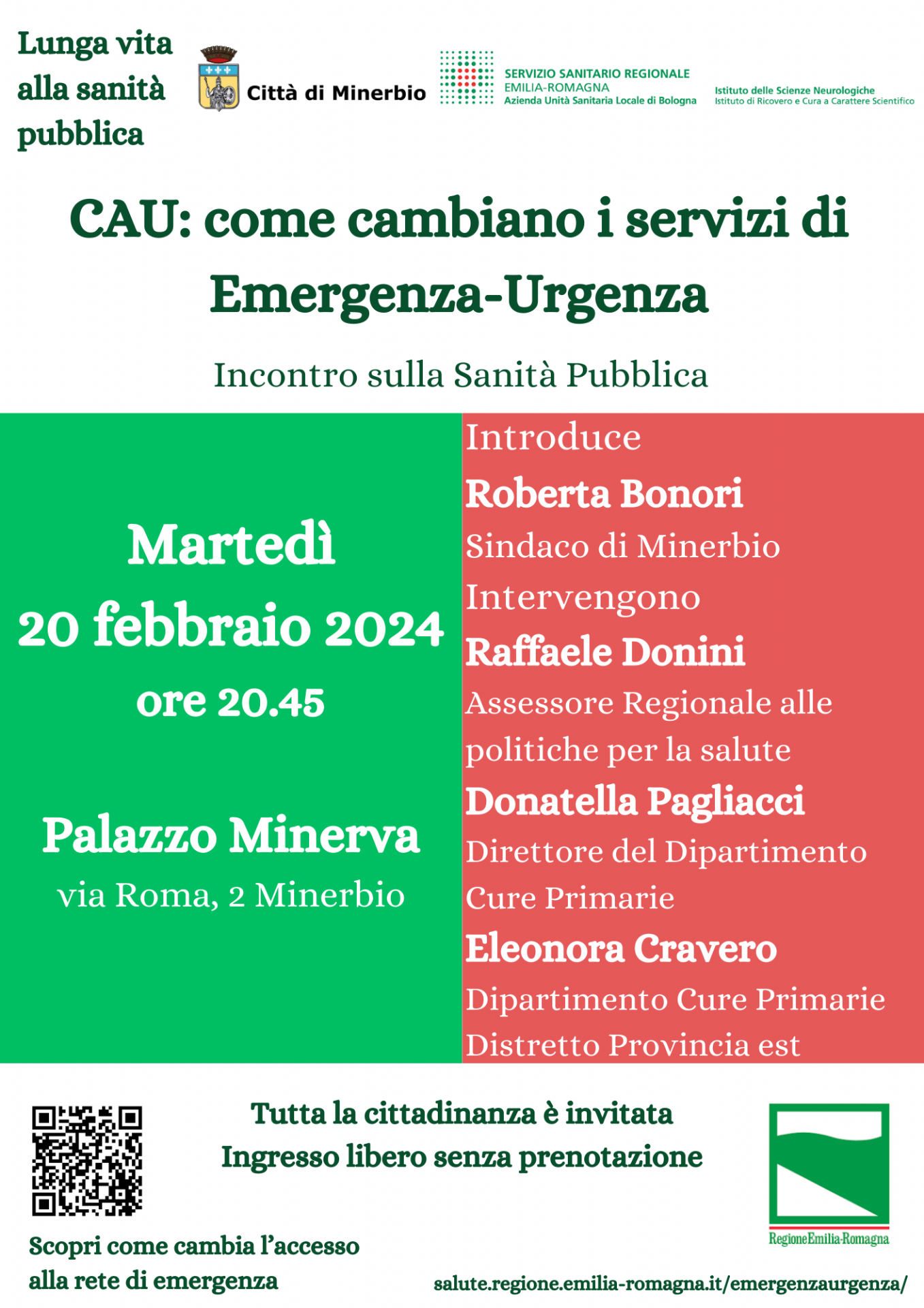 Martedì 20 febbraio 2024 alle ore 20:45 a Palazzo Minerva (via Roma, 2 Minerbio) si terrà un incontro sulla sanità pubblica e le nuove modalità per accedere al Pronto soccorso e ai servizi di emergenza-urgenza.