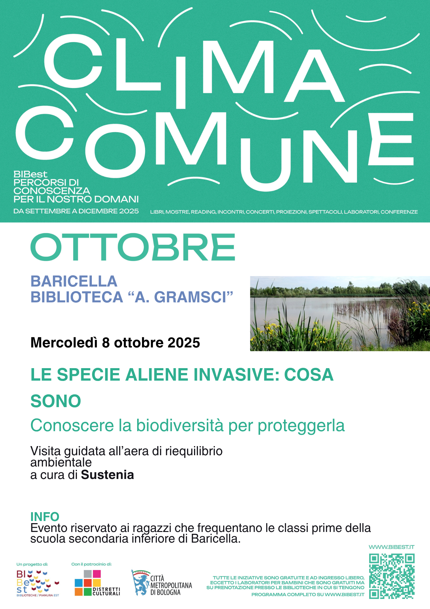 La rassegna di BiBest – Biblioteche Pianura Est, realizzata in collaborazione con il Comune di Baricella e la Biblioteca A. Gramsci e dedicata al tema del cambiamento climatico, approda anche nel nostro Istituto Comprensivo e coinvolgerà i ragazzi delle classi prime della scuola secondaria di Baricella.