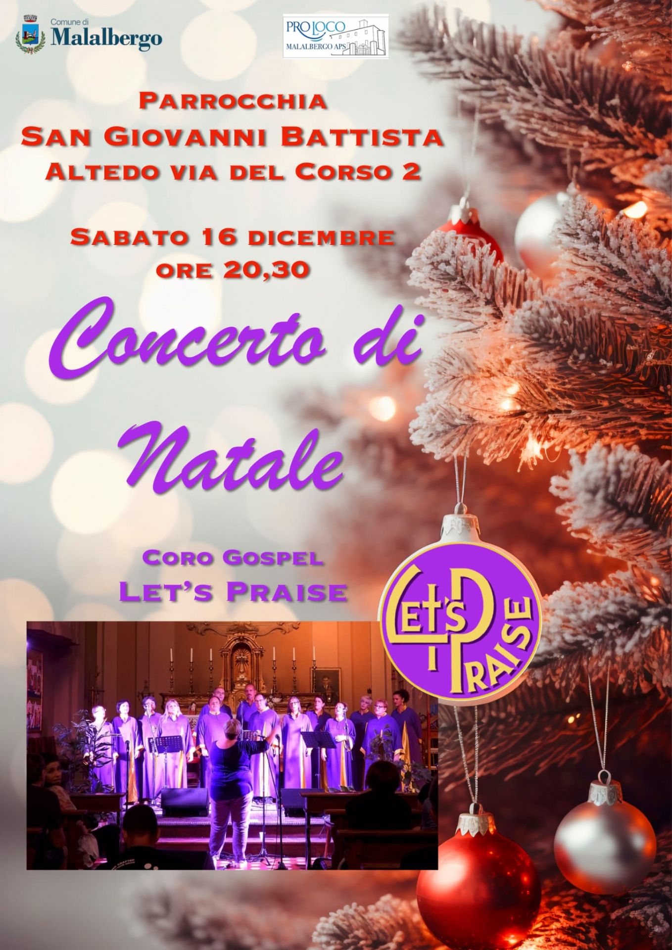 Sabato 16 Dicembre ore 20:30 presso la Parrocchia San Giovanni Battista si svolgerà il Concerto di Natale col Coro Gospel Let's Praise