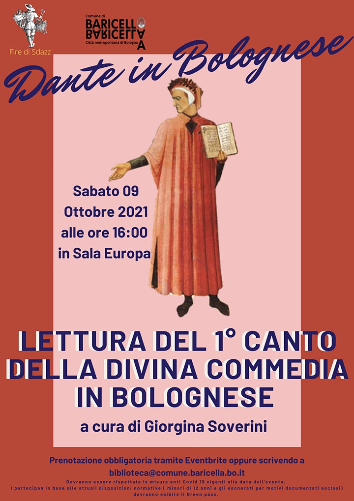 In occasione del ritorno della Fire di Sdazz del 2021,il giorno Sabato 9 Ottobre 2021 alle 16:00 Giorgina Soverini (insegnante in pensione) ci leggerà il primo Canto dell'Inferno tutto in dialetto bolognese.