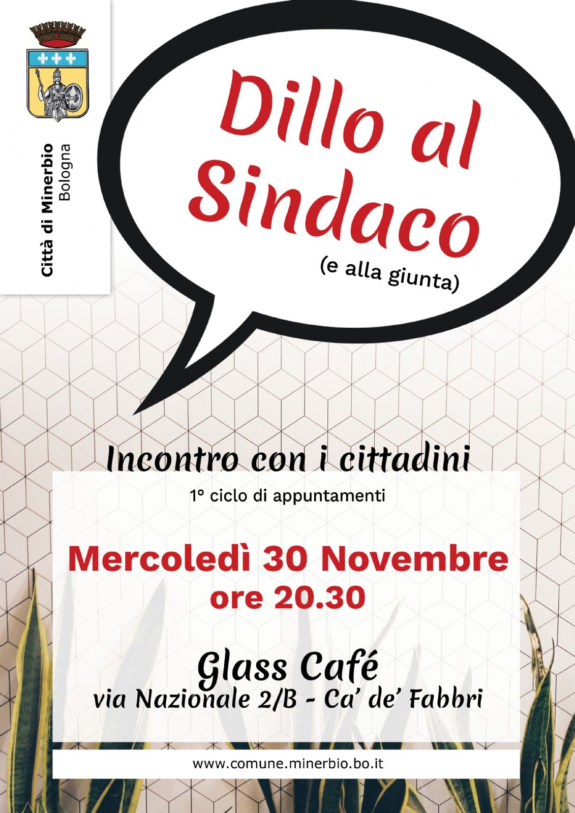 Mercoledì 30 novembre, alle ore 20:30, presso Glass Cafè, via Nazionale, 2/b Cà de Fabbri, ci sarà il secondo appuntamento del ciclo di incontri "Dillo al Sindaco" e alla Giunta.