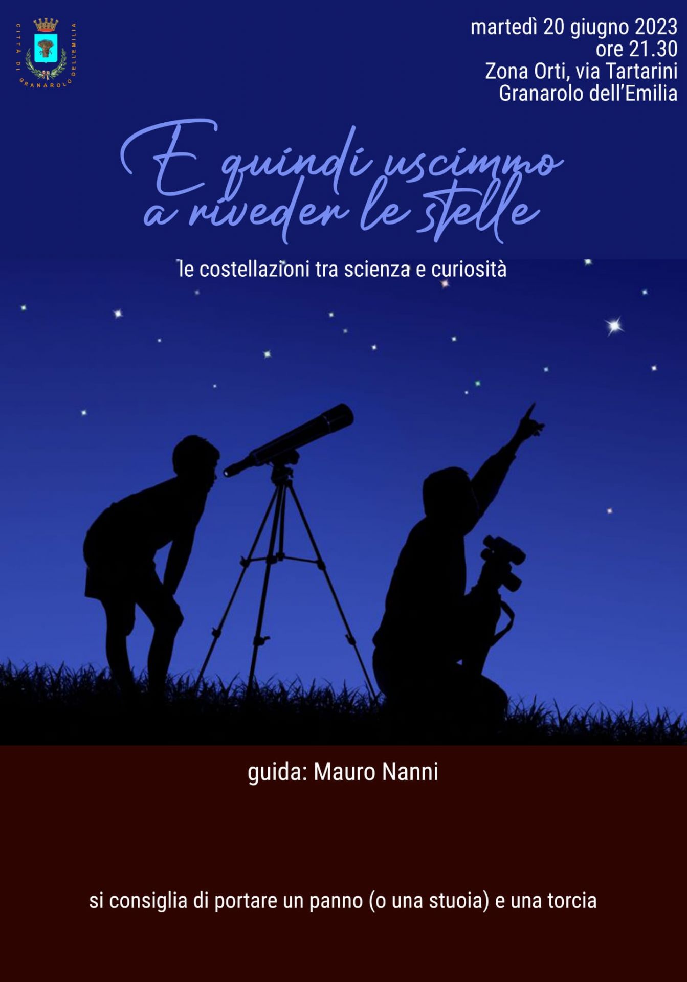 "E quindi uscimmo a rivedere le stelle" è l'appuntamento organizzato dal Comune con ospite speciale l'astrofisico Mauro Nanni, che accompagnerà i partecipanti alla scoperta di costellazioni e pianeti.